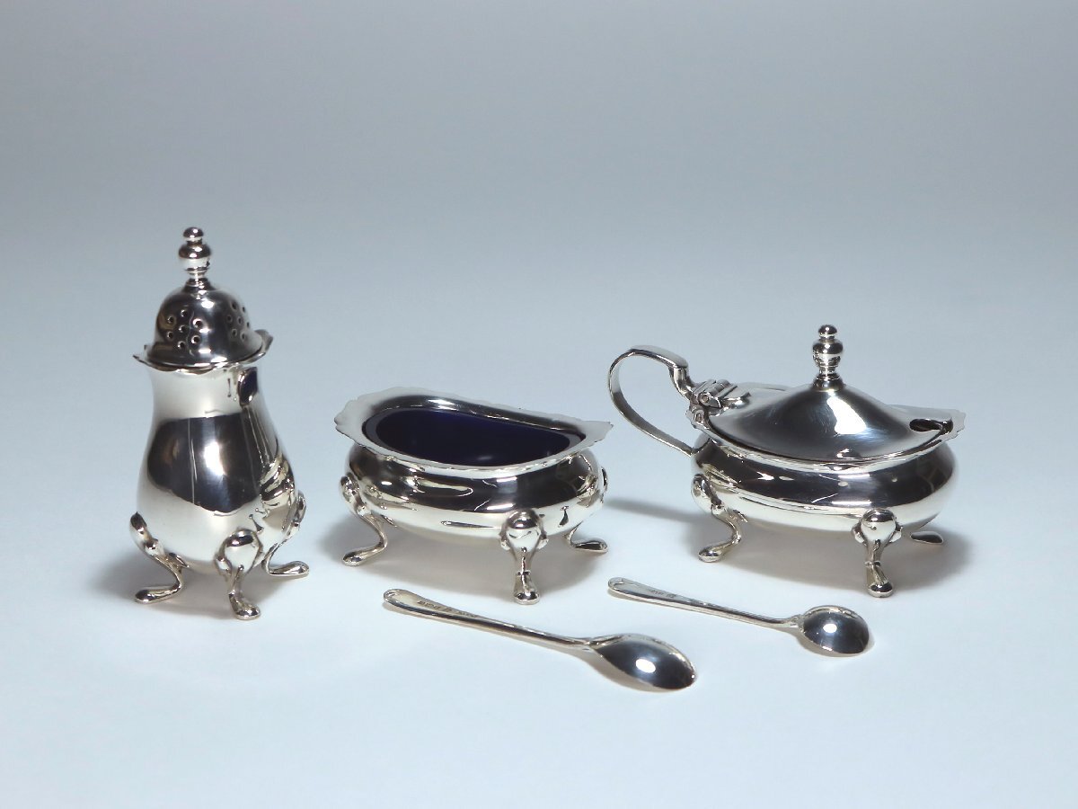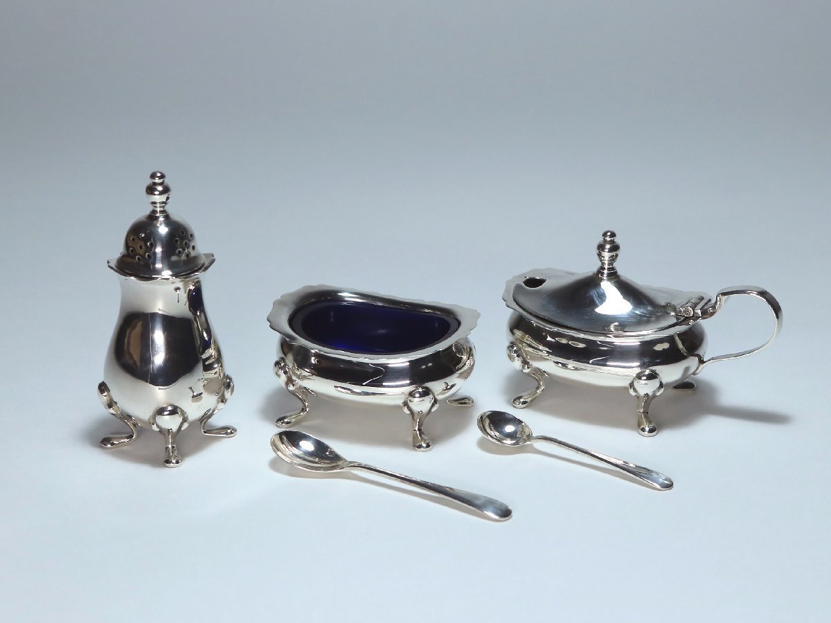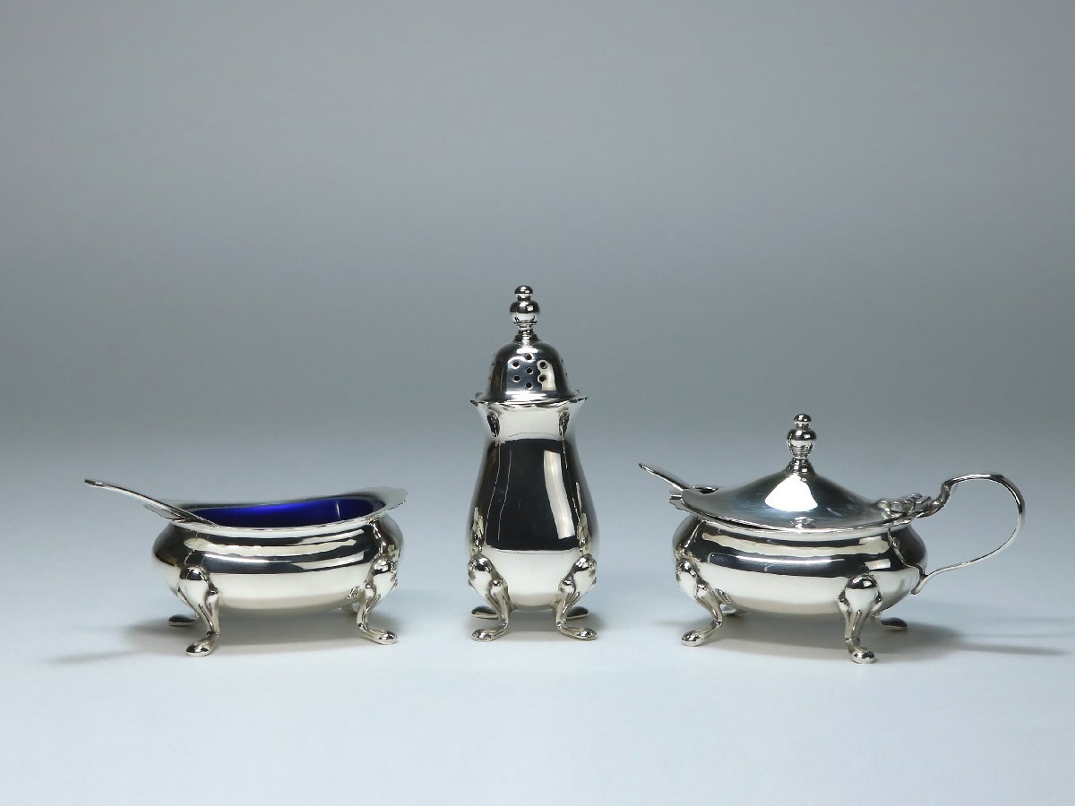英国 ヴィンテージの銀製 調味料入れセットです。