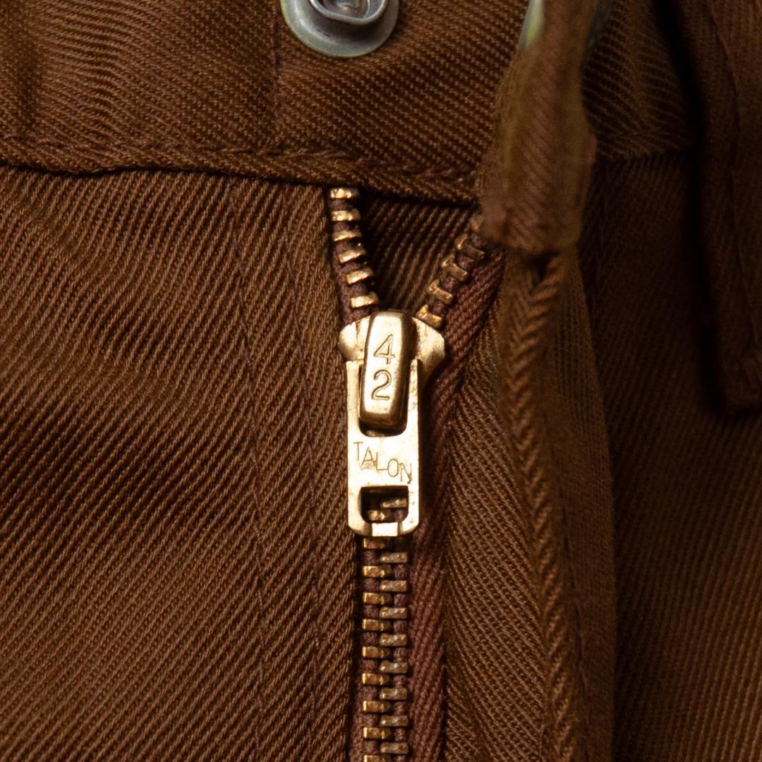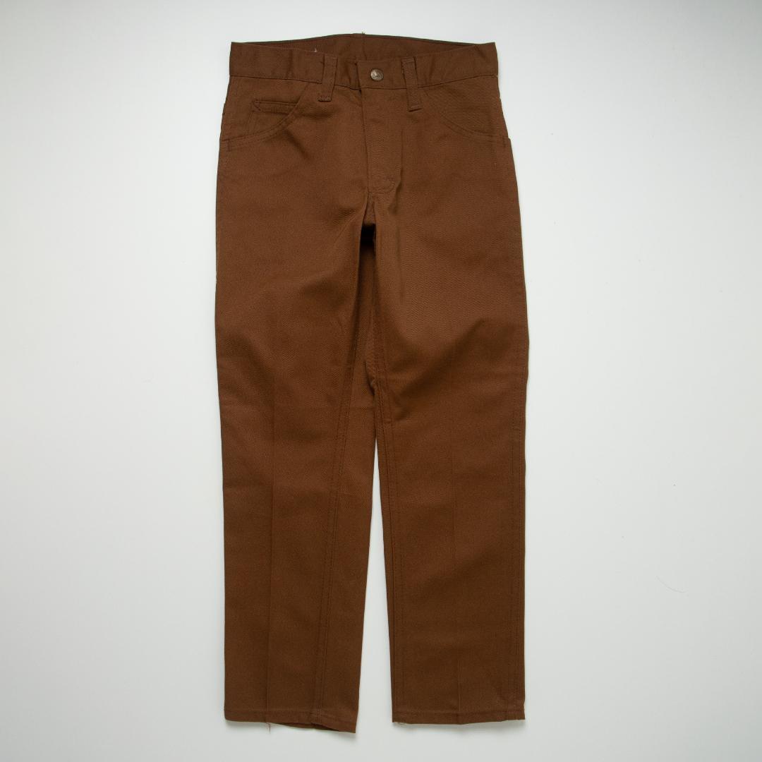 1970年代のLeensのキッズスラックスパンツです。 生地は薄手のツイル生地です。 トップボタンはスナップボタン仕様、フロントジッパーはTALON42です。 ほぼ着用感がない、限りなくデッドストックに近い状態です。 表記サイズ 不明 ウエスト 62cm レングス(股下) 58cm 股上 22cm ワタリ幅 24cm 裾幅 15.5cm 全長 78cm |