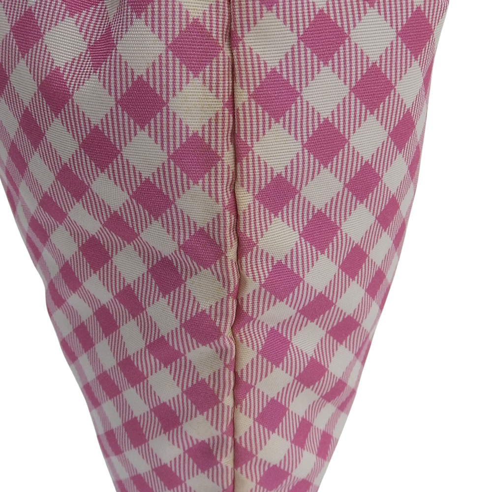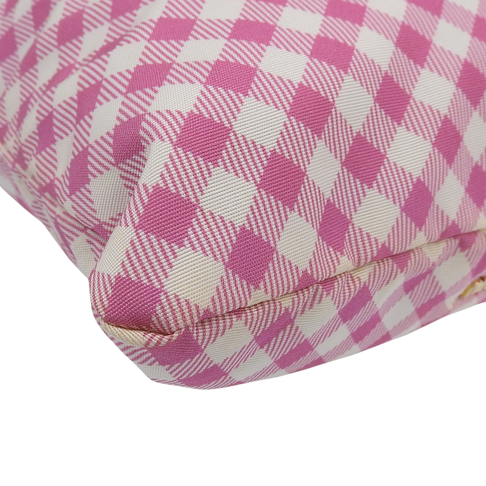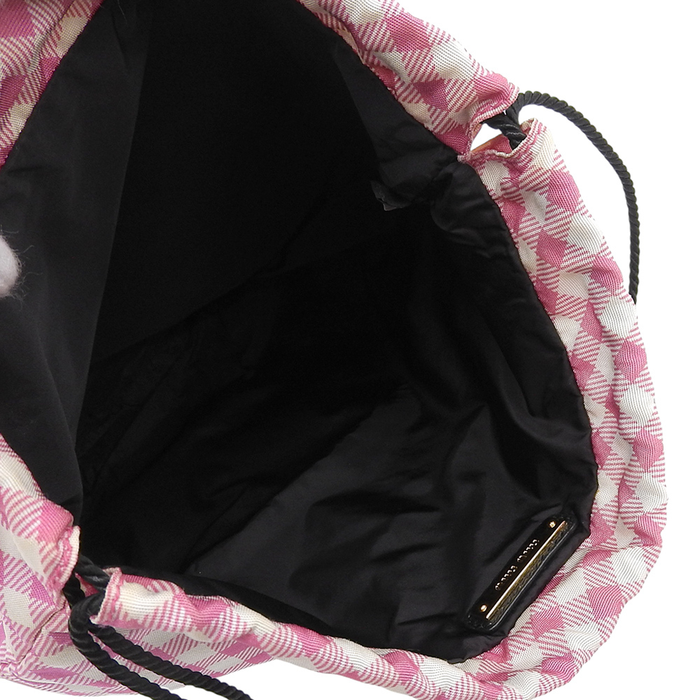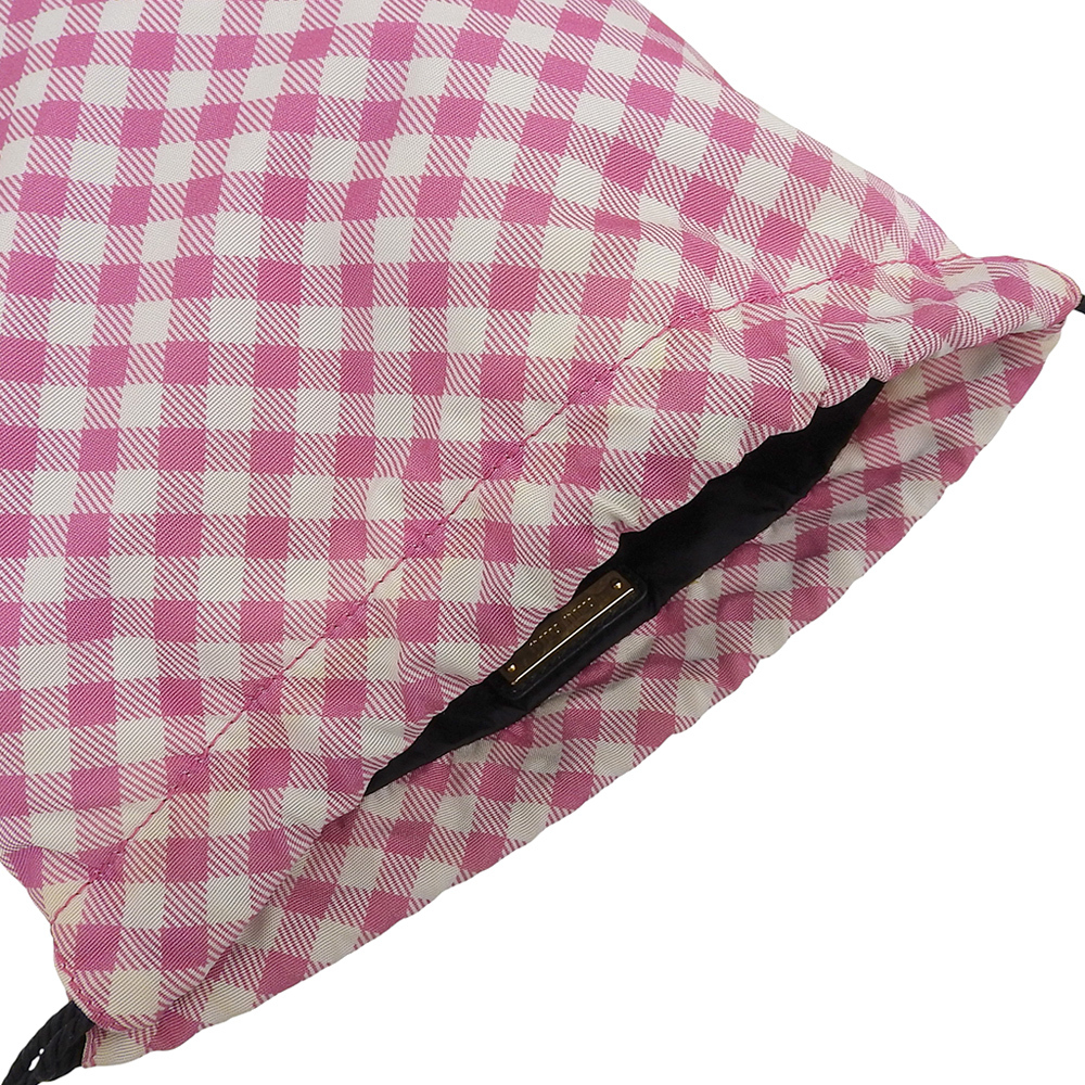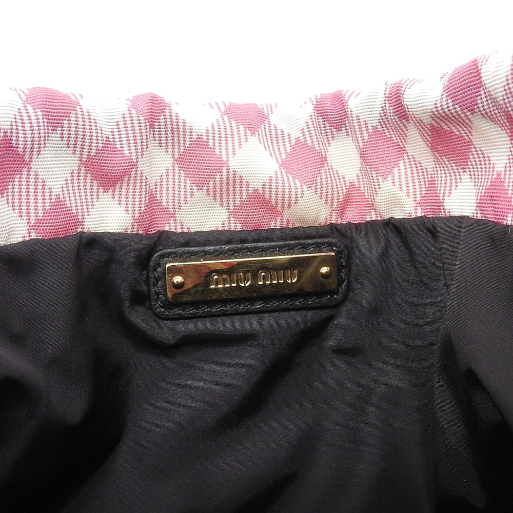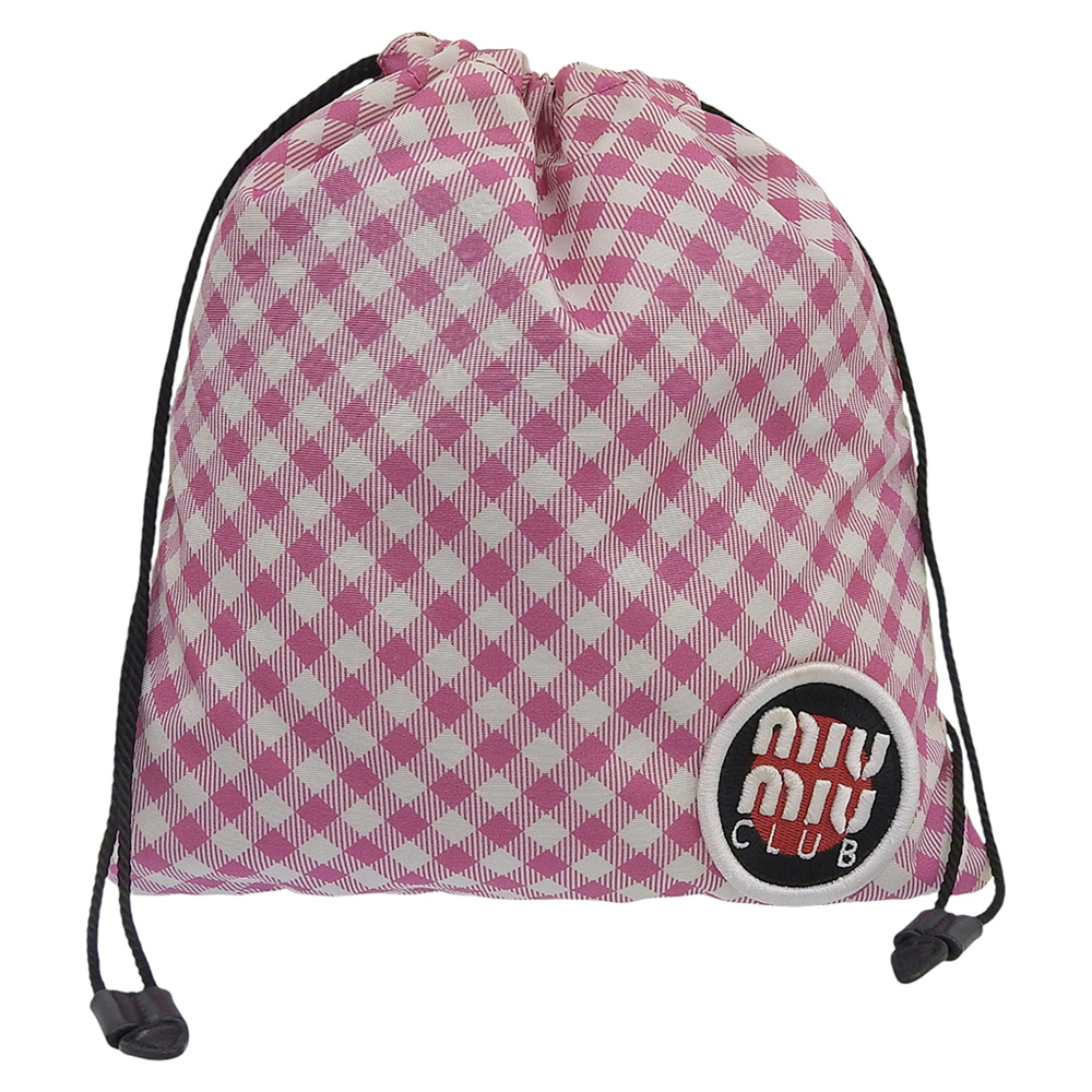 美品 ミュウミュウ 2018年商品 5NG005 CLUBワッペン ギンガムチェック レザー ドローストリング ハンドバッグ ポーチ 巾着 ピンク レディ |