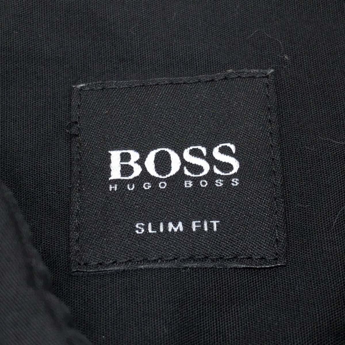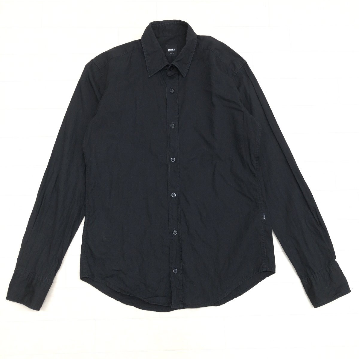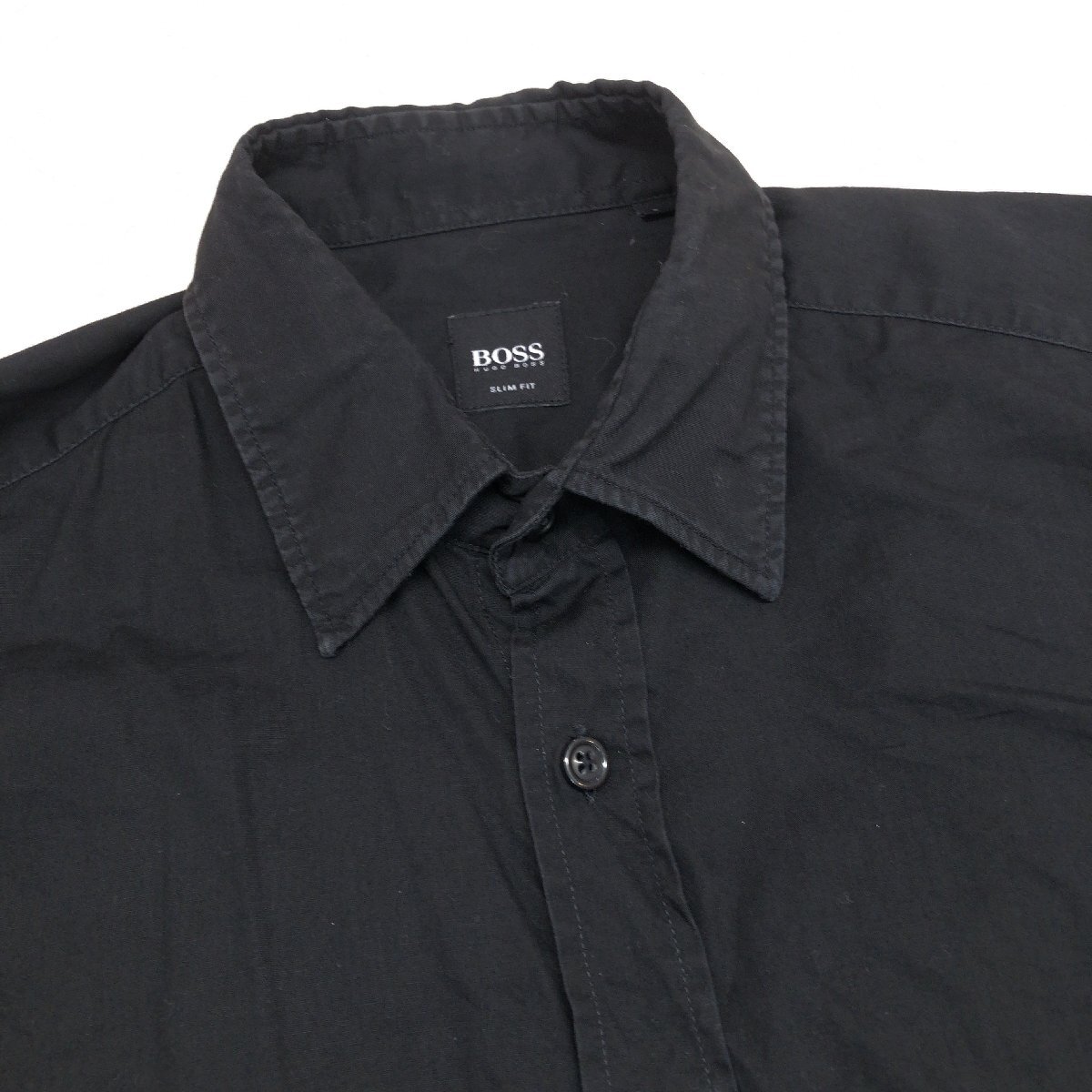 伊製 HUGO BOSS ヒューゴボス 黒ラベル スリムフィット コットン100% ロングスリーブ シャツ S 黒 ブラック 長袖 国内正規品 メンズ 紳士