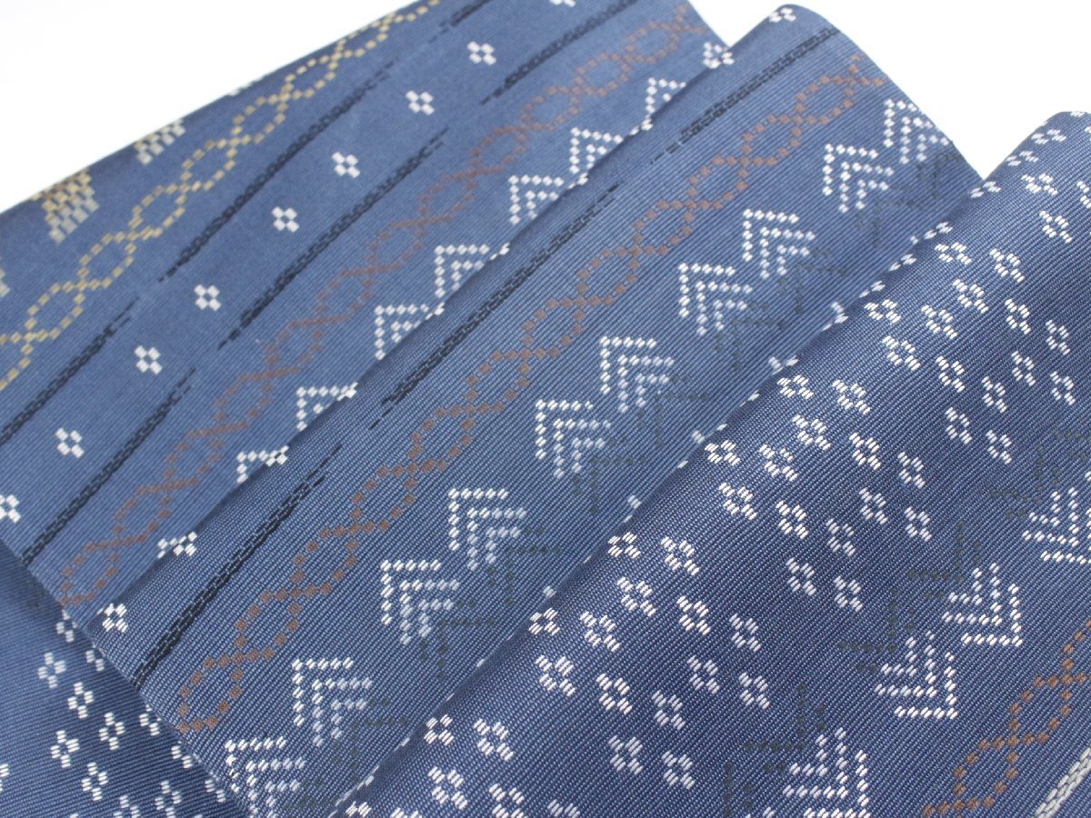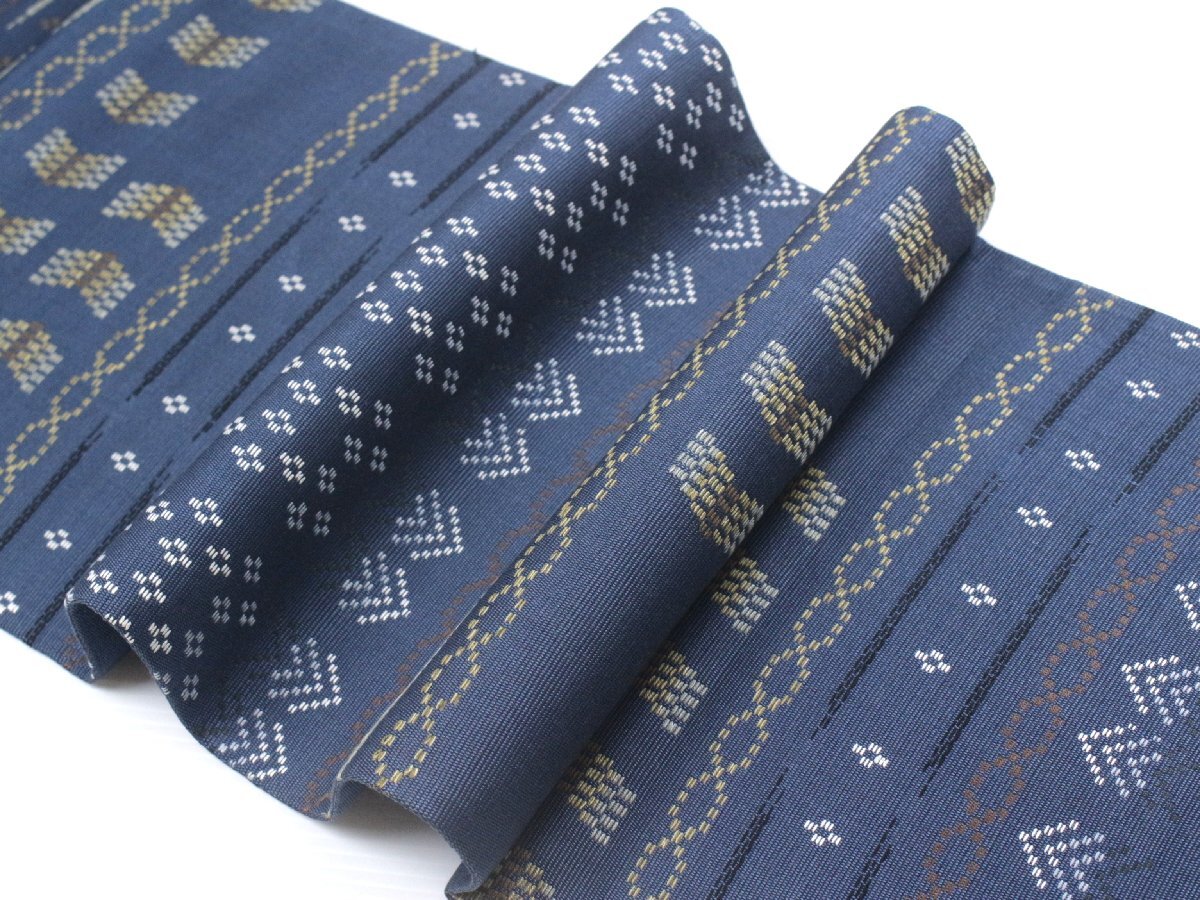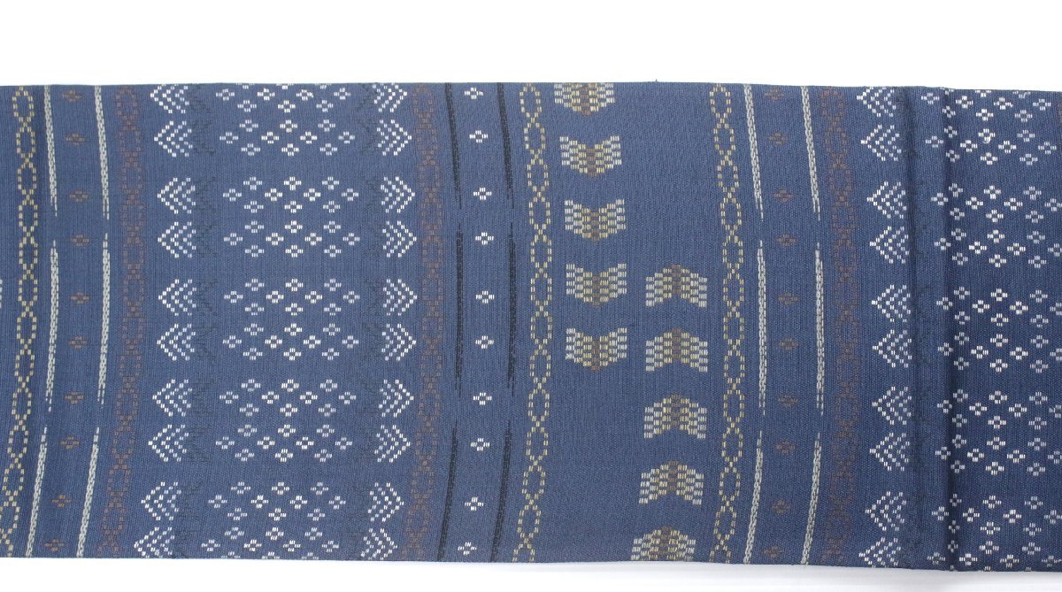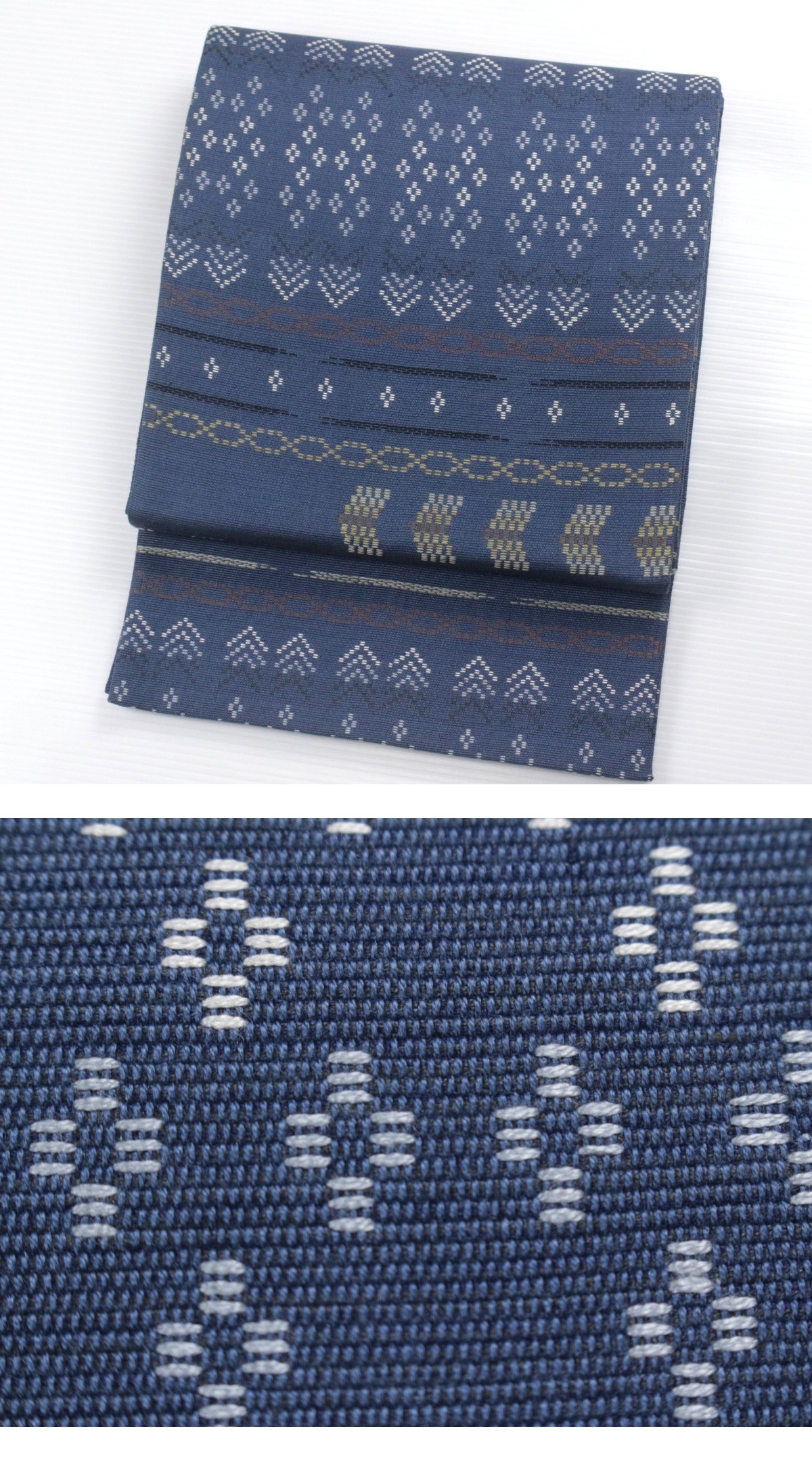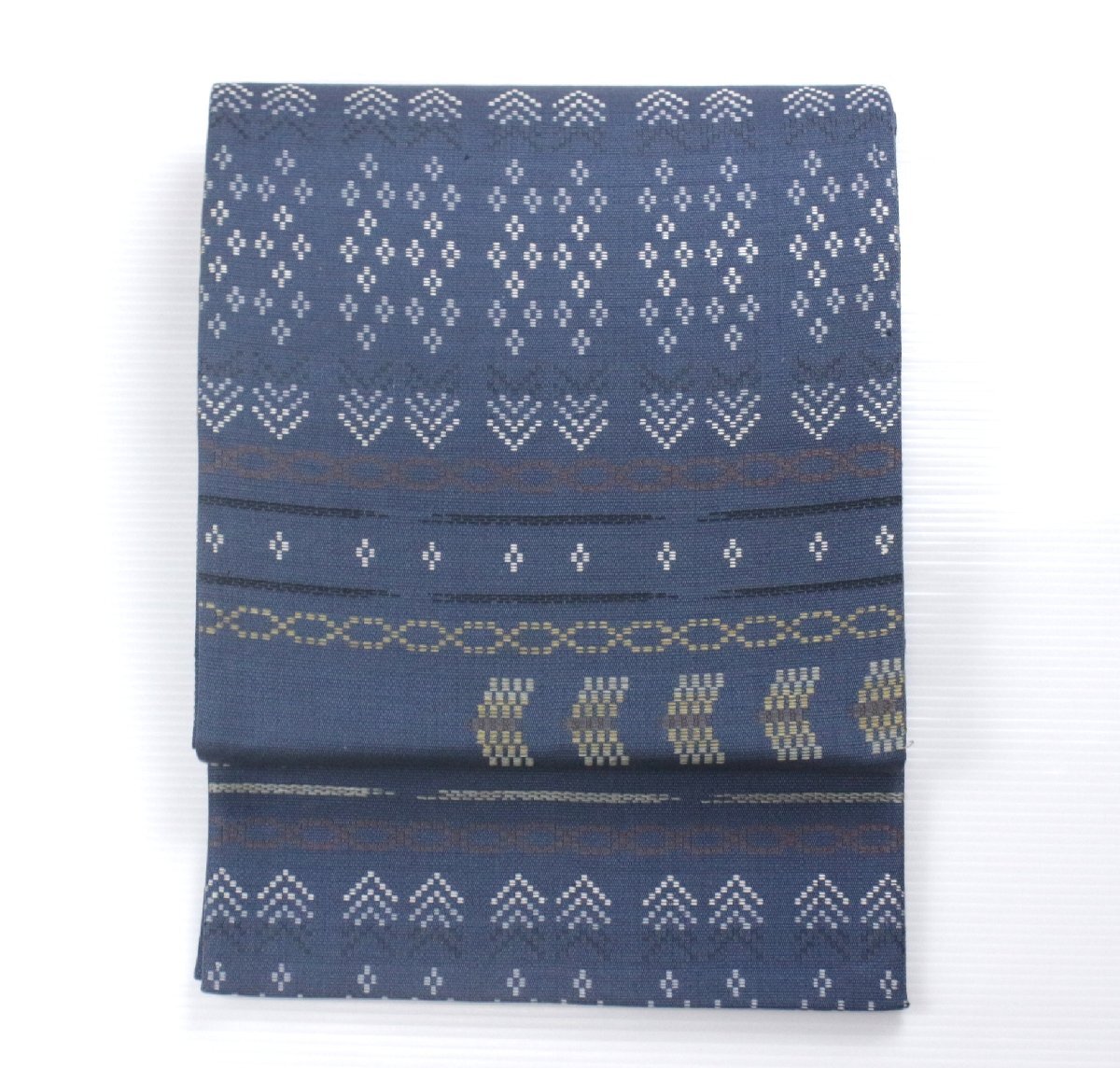 花織の正絹袋帯のご紹介です。 花織とは浮織の一種で、製織の途中で糸を組織から外すことで、浮織が生まれます。 もとは衣料として上流階級の晴れ着などに織り出され、手のこんだものがつくられました。 現代でもその素朴さと愛らしさから、上質なお出かけ着として大変人気がございます。 民芸的でありつつも、現代の町並み、都会にも融けこむその構成美。 ぬくもり溢れる風合いを新しい感性で受け継ぐ一品として、大切にお持ちいただければ幸いでございます。 ※撮影時の部屋の照明によって画像の色に若干の差がございます。色味に差がございますことをご了承のうえご検討下さいませ。 …状態… 締め跡あり。 ※全くの新品ではございませんので、記載のない変色やスレ、ヤケ、その他僅かな難がある場合がございます。そのような理由でのキャンセルはお受けできませんので、ご了承の上ご検討お願いいたします。 |