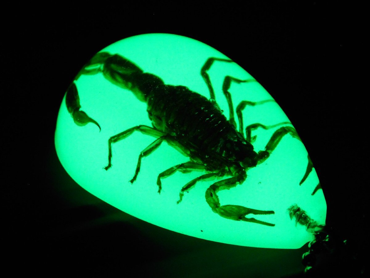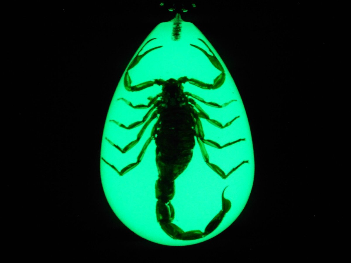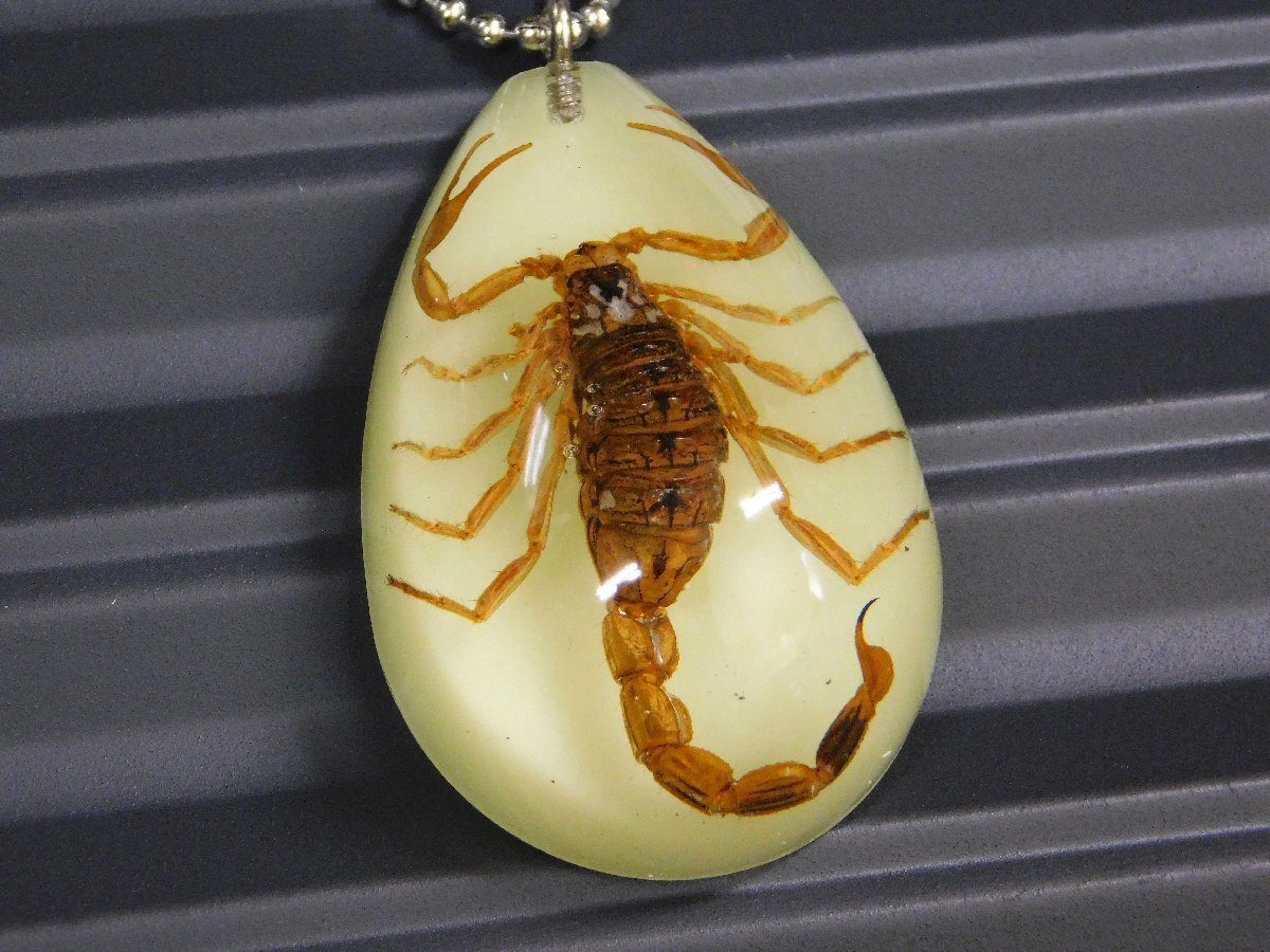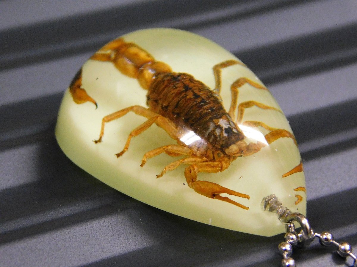 本物のサソリが入ったキーホルダー、「蓄光キーチェーン」です。
