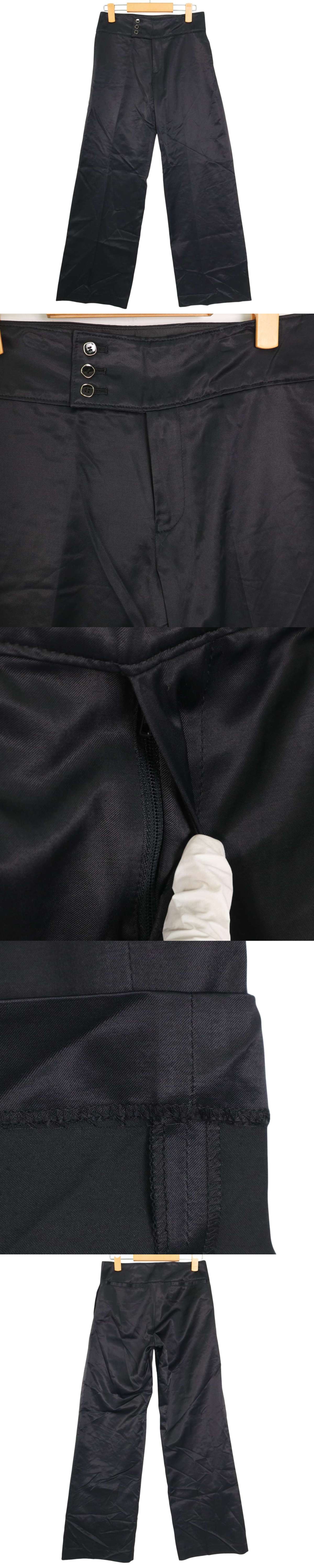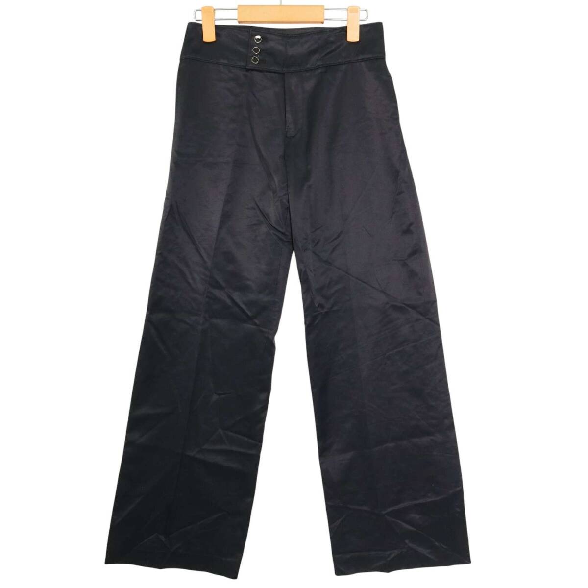 ADAM ET ROPE アダム エ ロペ 通年 サテン風 光沢★ ワイド スラックス パンツ Sz.36 レディース 黒 日本製