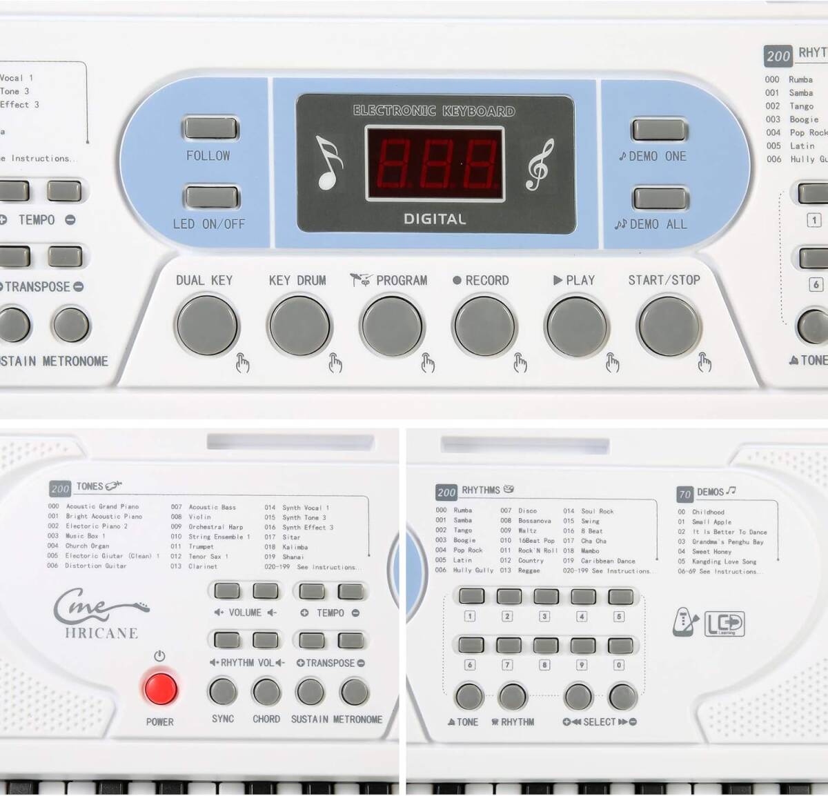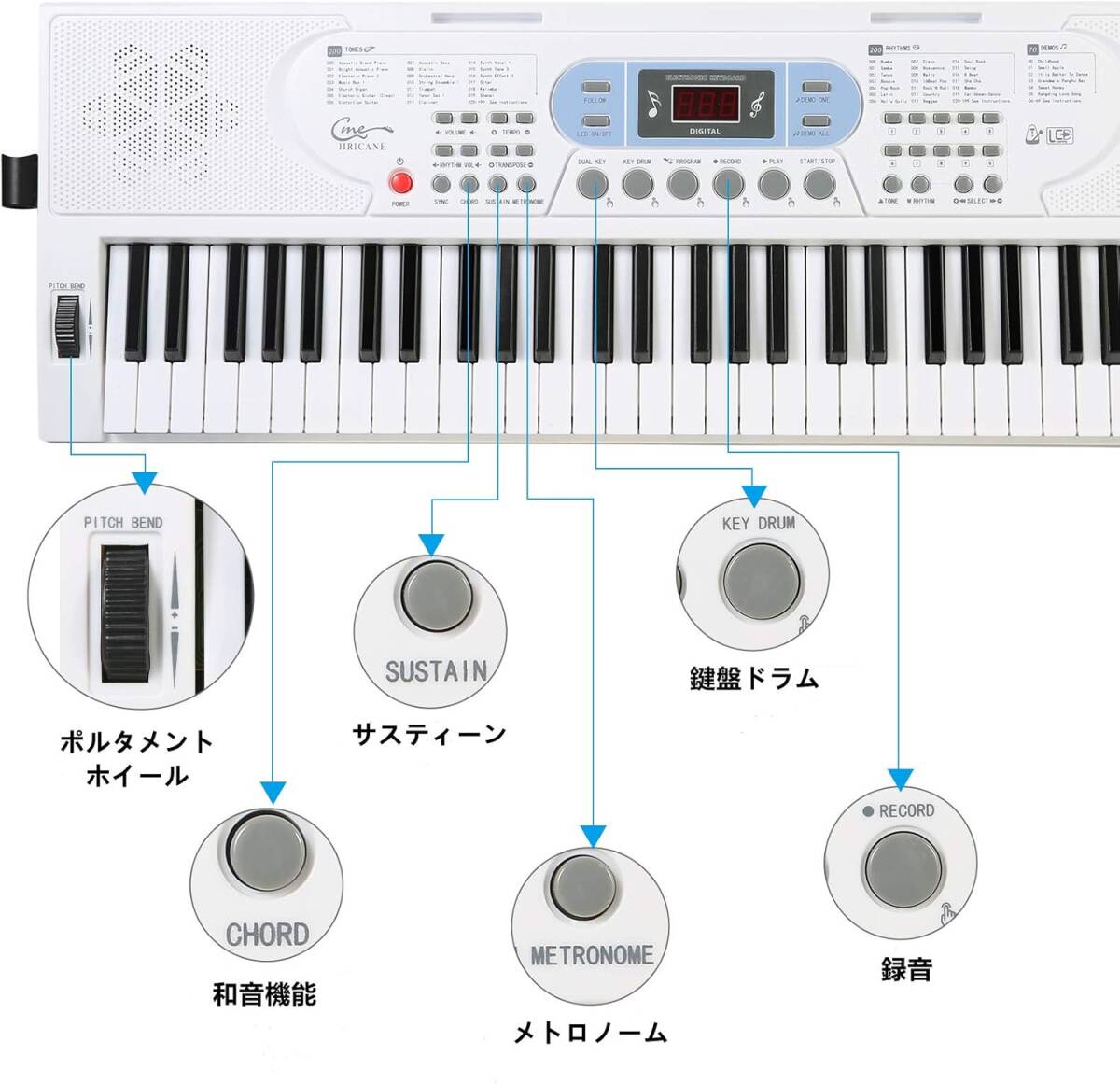 Hricane キーボード ピアノ 電子ピアノ 61鍵盤 200種類音色 200種類リズム 60曲デモ曲 LCDディスプレイ搭載 光る鍵盤 楽器