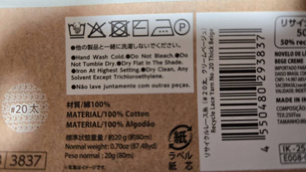 色・・・クリームベージュ(←糸の帯表記をそのまま記載しています。)