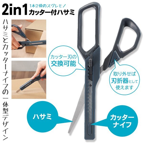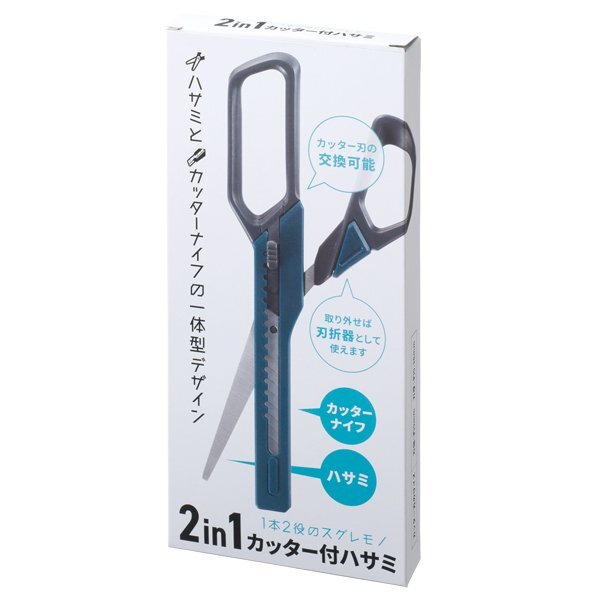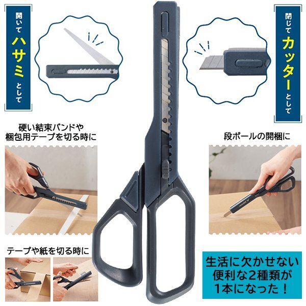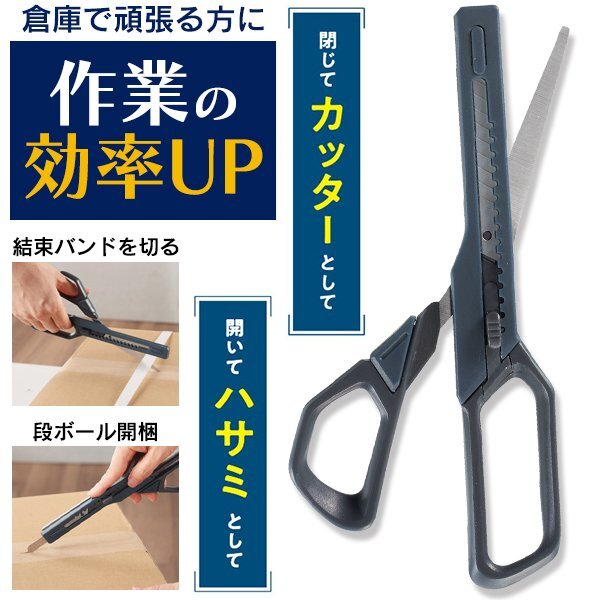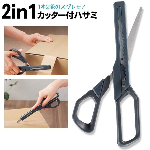 カッター付 はさみ 1本で2種類 一体型 ハサミ カッターナイフ 倉庫 事務 作業 引っ越し 梱包 工作 文房具 送料無料 3M◇ カッター付ハサミ