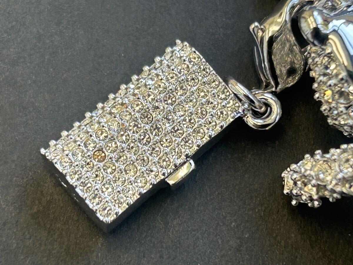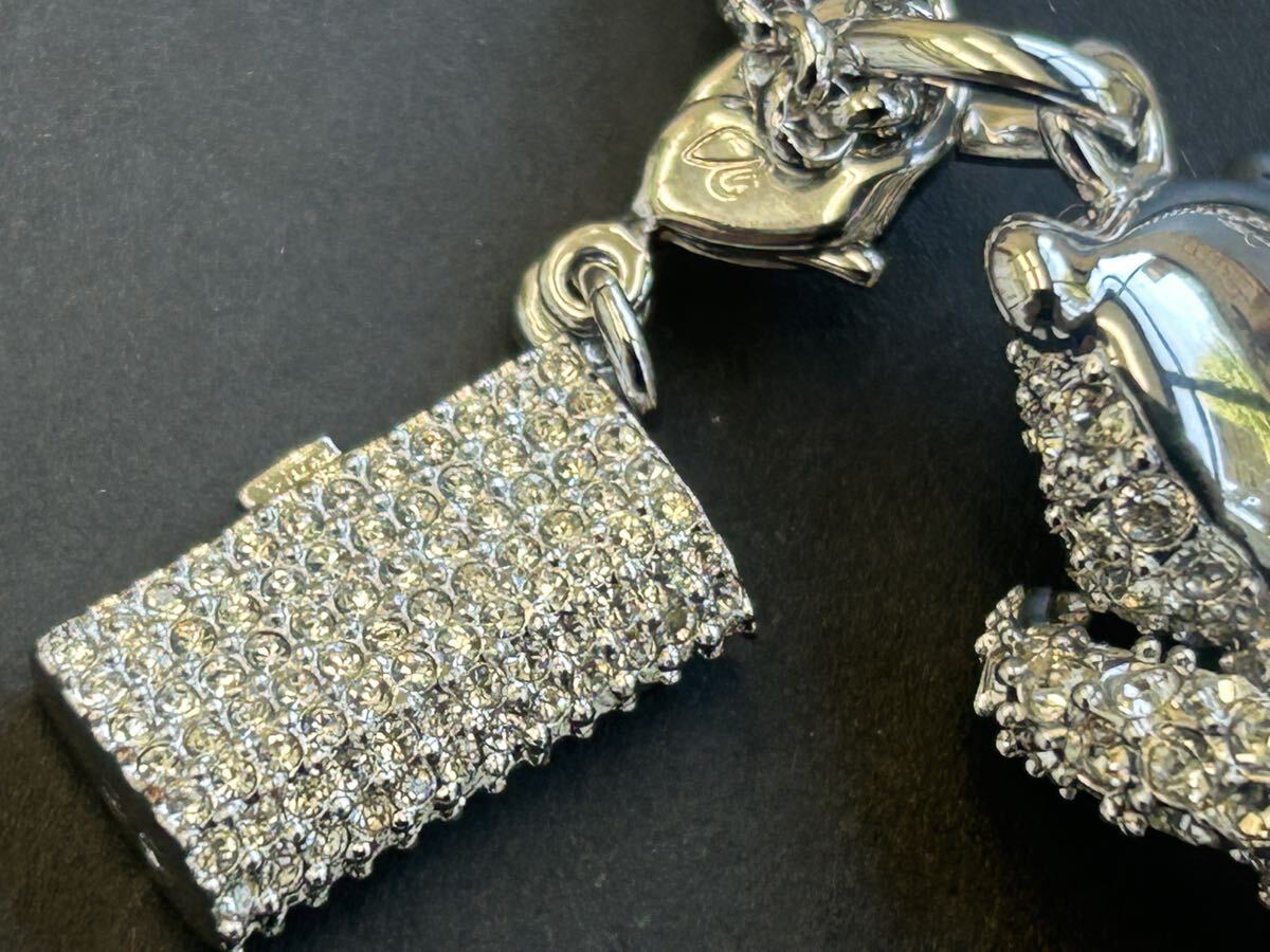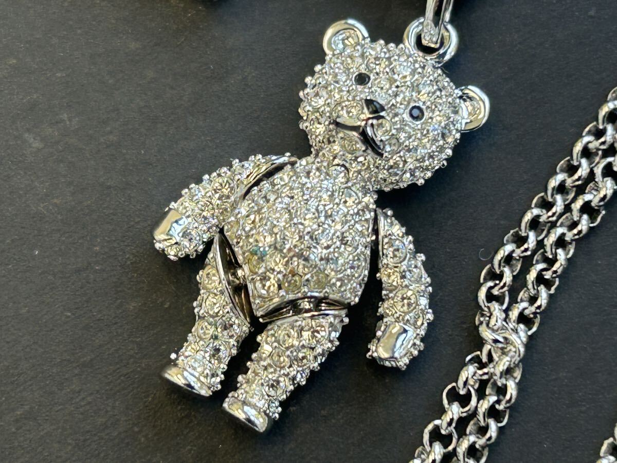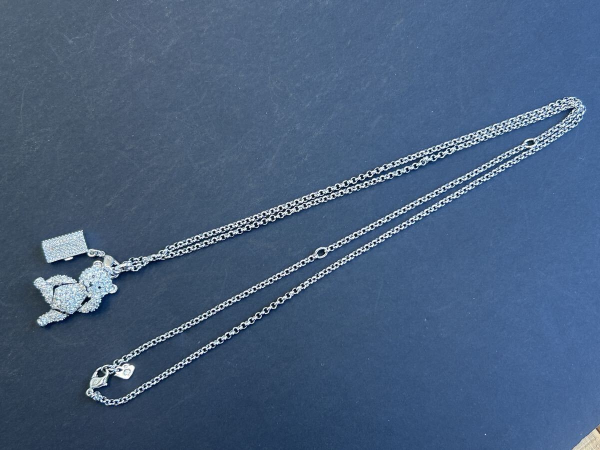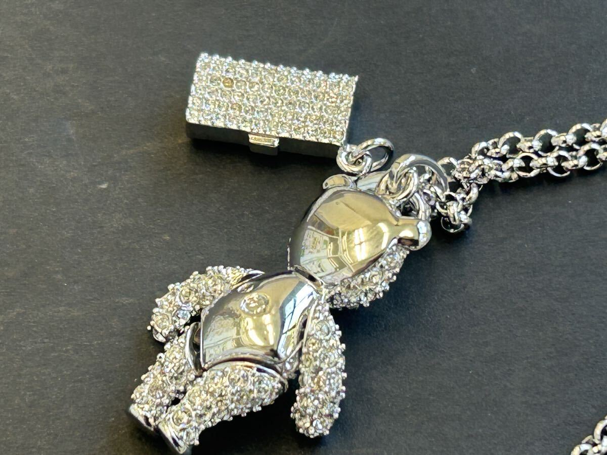 ★SWAROVSKI|スワロフスキー ネックレス ベア クマとバッグモチーフ ラインストーン シルバーカラー ロングチェーンアクセサリー★