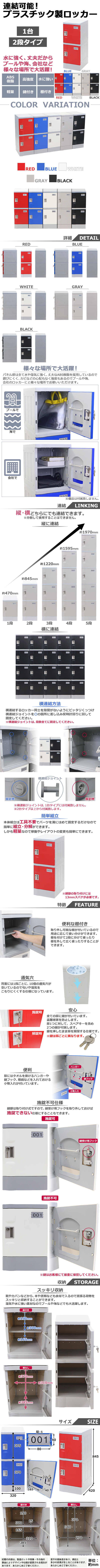 | 商品名 | 送料無料 プラスチックロッカー ロッカー エコノミーモデル 連結可能 2人用 2段 1台 おしゃれ 選べる5カラー 水に強い 鍵付き スペアキー付き ABS樹脂製 樹脂ロッカー プラスチック製 収納 プール 海 事務所 会社 病院 更衣室 貴重品 オフィスロッカー オフィス家具 サイドチェスト plalocker21 |