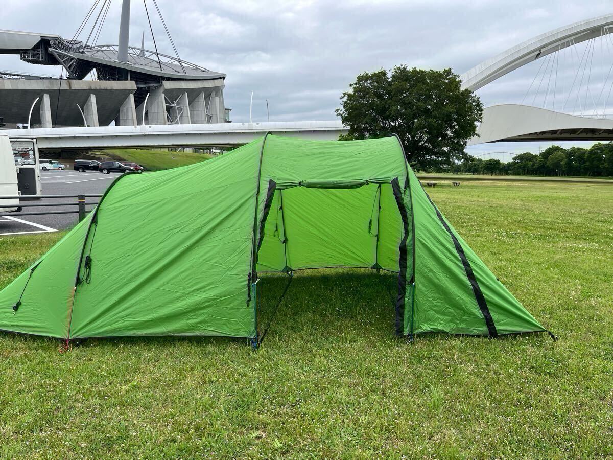 対応人数の割には軽量コンパクトで、いわゆるトンネルテントの為設営は分かりやすく簡単で、初心者にもおすすめの一張です!