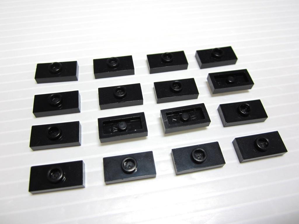 本品は黒色の1×2プレート16点(ポッチが真ん中・中古品)セットです。
