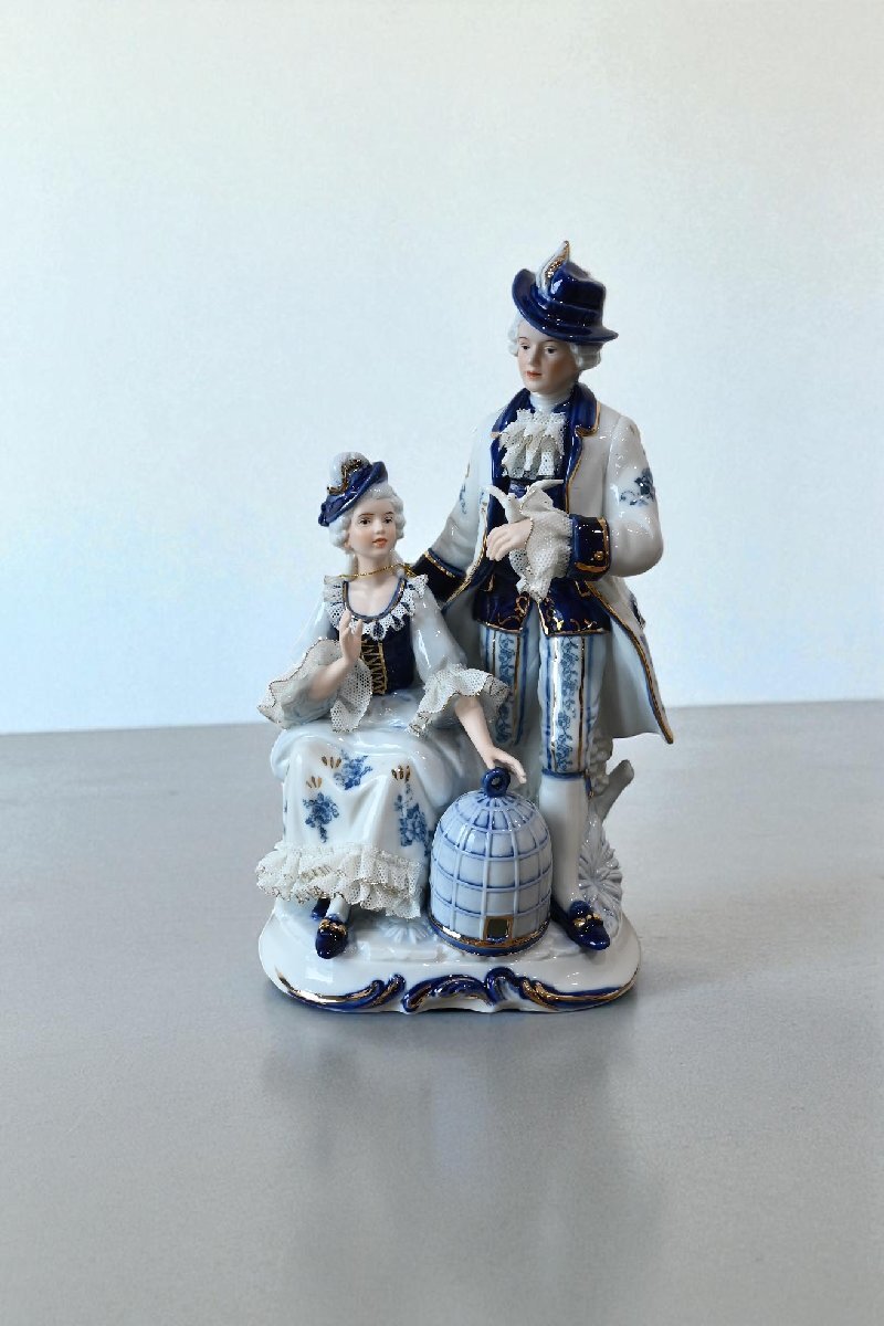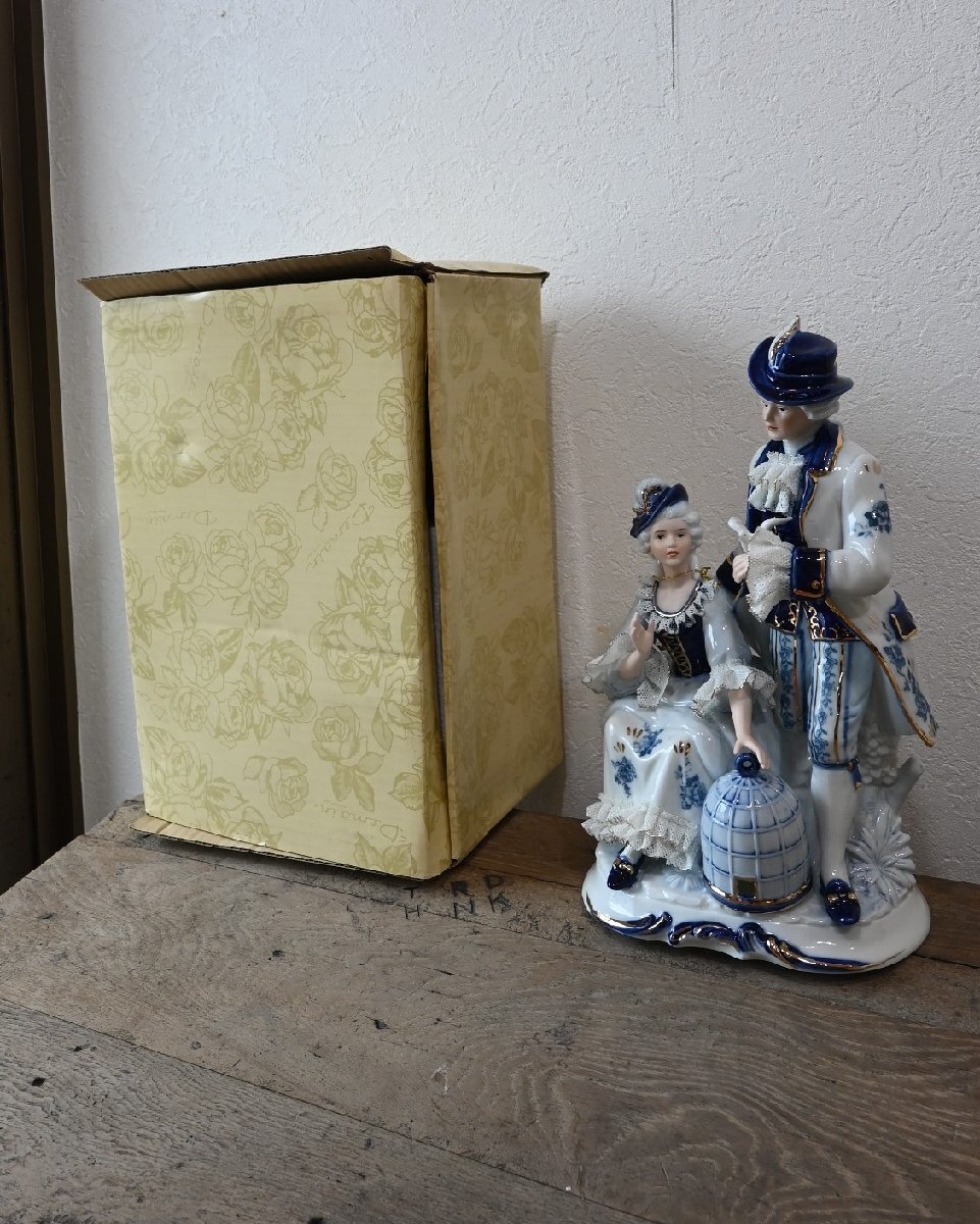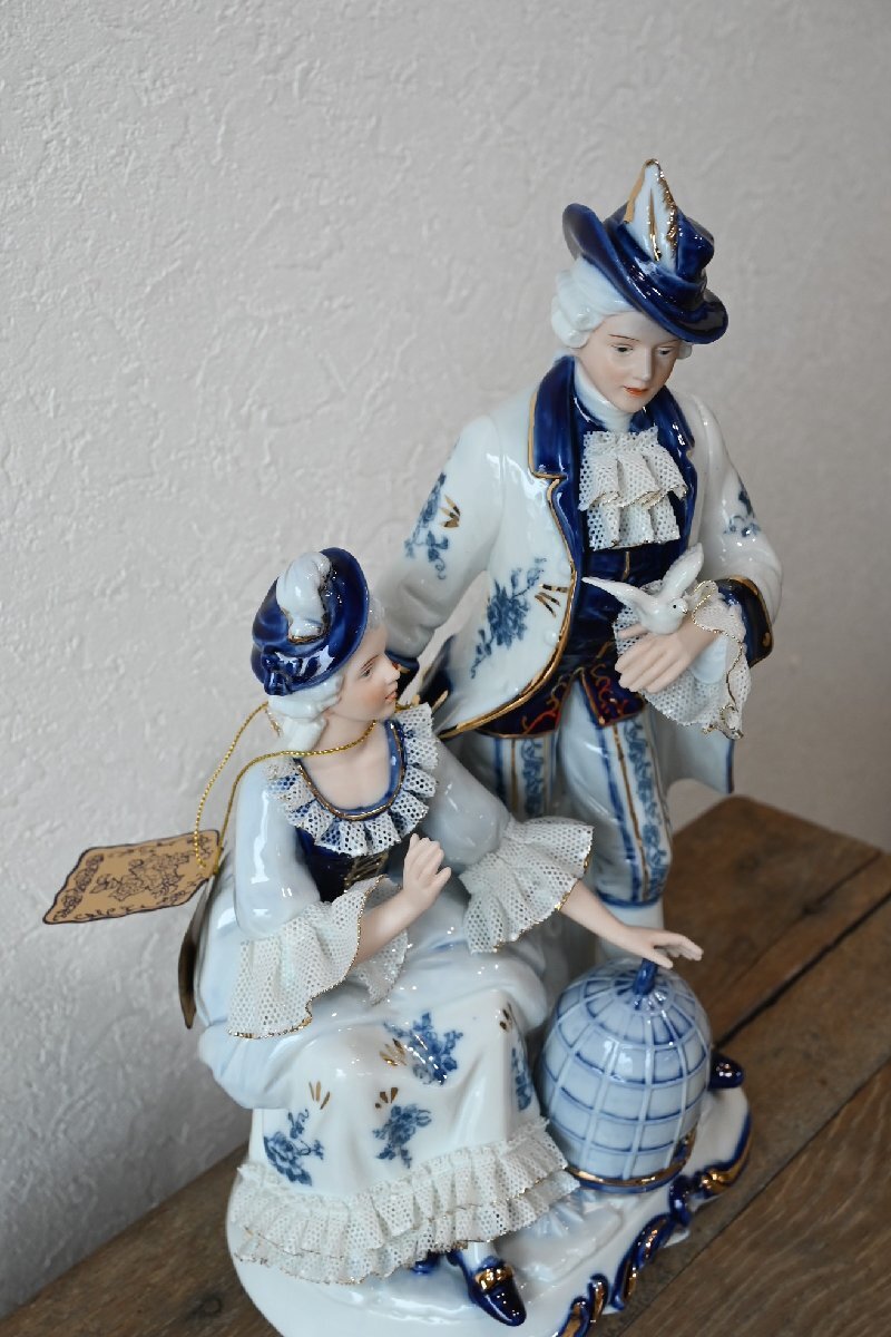 ○未使用Demain ドマン フィギュリン 西洋陶器人形 小鳥と貴婦人 オブジェ 古道具のgplus広島2509k