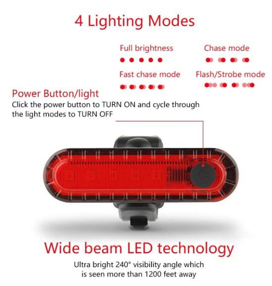 送料無料 未使用品 自転車 テールライト USB充電LEDライト 防水点滅サイクルライト 4点灯モード セーフティーライト 簡単装着 f5