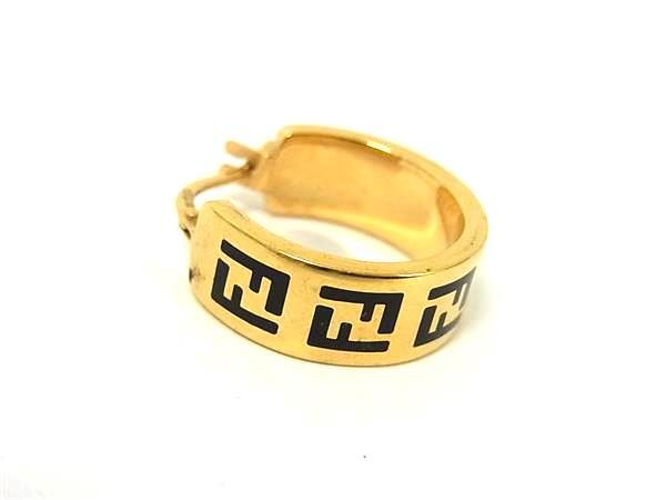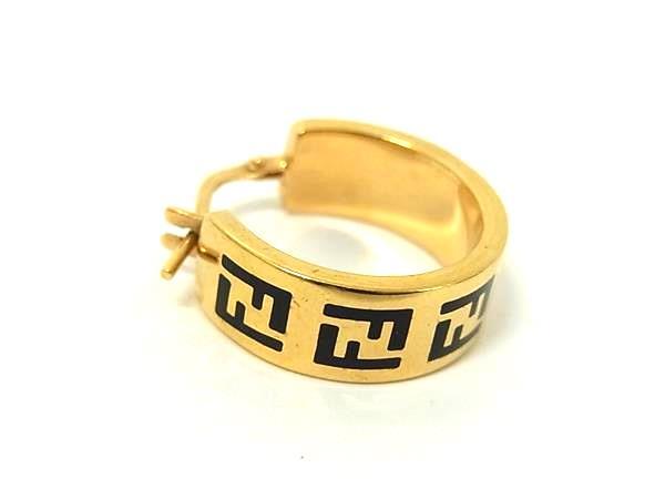 1円 ■美品■ FENDI フェンディ 片耳のみ フープ ピアス アクセサリー レディース ゴールド系×ブラック系 FP6573