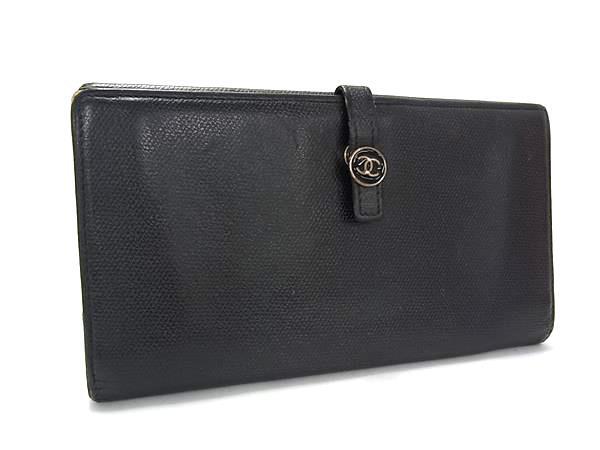 1円 CHANEL シャネル ココマーク ココボタン レザー 二つ折り 長財布 ウォレット 札入れ 小銭入れ レディース メンズ ブラック系 FN6373