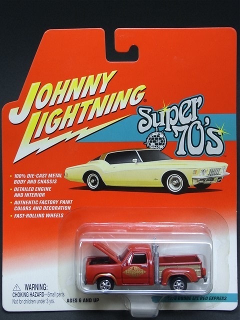 Johnny Lightning☆1/64 Super 70's☆Release 2 1978 Dodge Li'l Red Express コレクション整理のため出品します パッケージに入った画像はパッケージに戻した状態の画像です 通常 中古の状態の良いものを ルース 悪いものを ジャンク と呼んでいるようです ダイキャストボディ ダイキャストシャーシ です ボンネット開閉 スケール 1/64 |