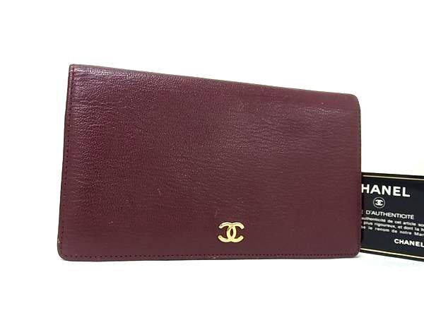 1円 CHANEL シャネル ココマーク レザー 二つ折り 長財布 ウォレット 札入れ 小銭入れ カード入れ メンズ レディース ボルドー系 FV0155