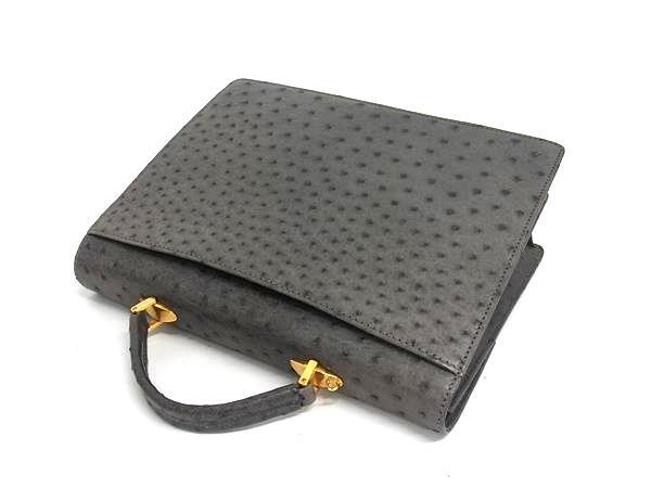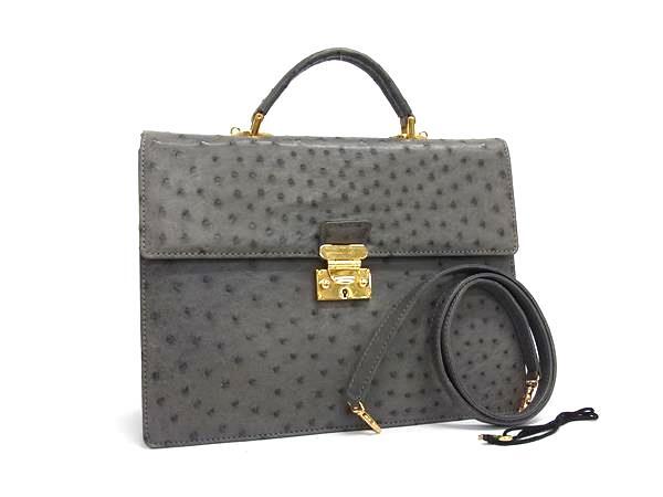 1円 ■極上■本物■美品■ GIANFRANCO FERRARI ジャンフランコフェラーリ オーストリッチ 2WAY ハンドバッグ ショルダー グレー系 BP5193