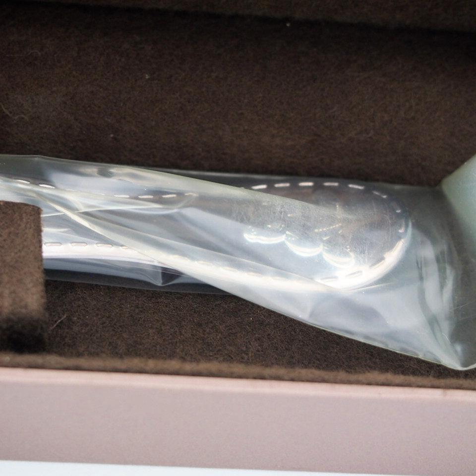 未使用品と伺っておりますが、銀特有のクスミや黒ずみがございます。そのため「未使用に近い」としております。シルバークリーナを使えばすぐに綺麗になります。