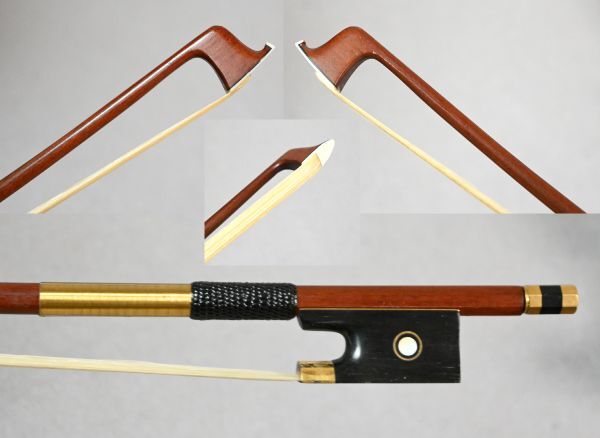 ■高品質な 4/4 Pernambuco の 丸弓で、 lizard skinグリップ・Ebonyフロッグ・パリジャンアイ・ニッケルゴールド、馬毛はモンゴル毛を使用してで製作されている High Quality な 弓で 初心者~中級者まで幅広く使用できます。