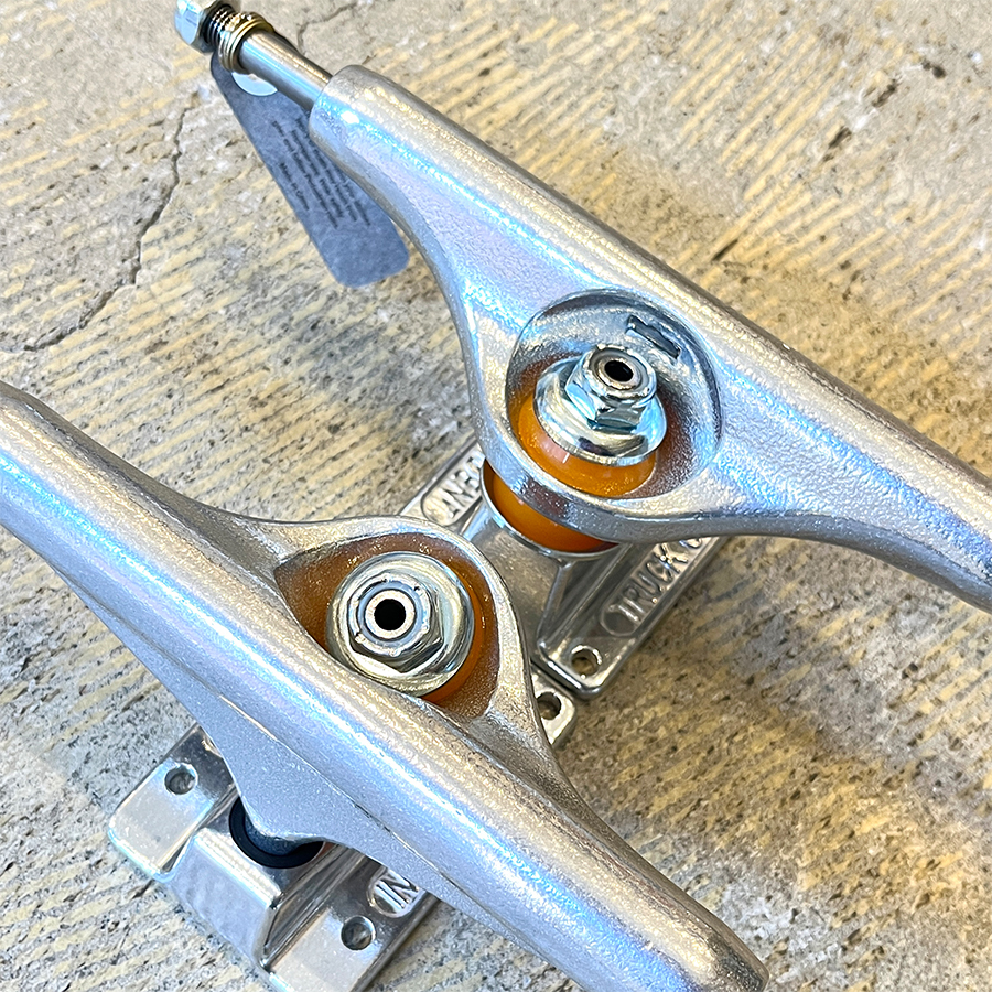 40年以上の歴史を誇る世界最強のトラックと称される「INDEPENDENT TRUCKS」。 こちらは中空キングピンと中空シャフトの仕様に加え、 FORGED ベースプレートを採用した FORGED HOLLOW モデルになります。 通常のトラックに比べ「10%」軽量化されており、強度もアップしています。 インディのトラックのモデルの中で一番売れているのがこの FORGED HOLLOW 。 ノークレーム、ノーリターンでお願いします。