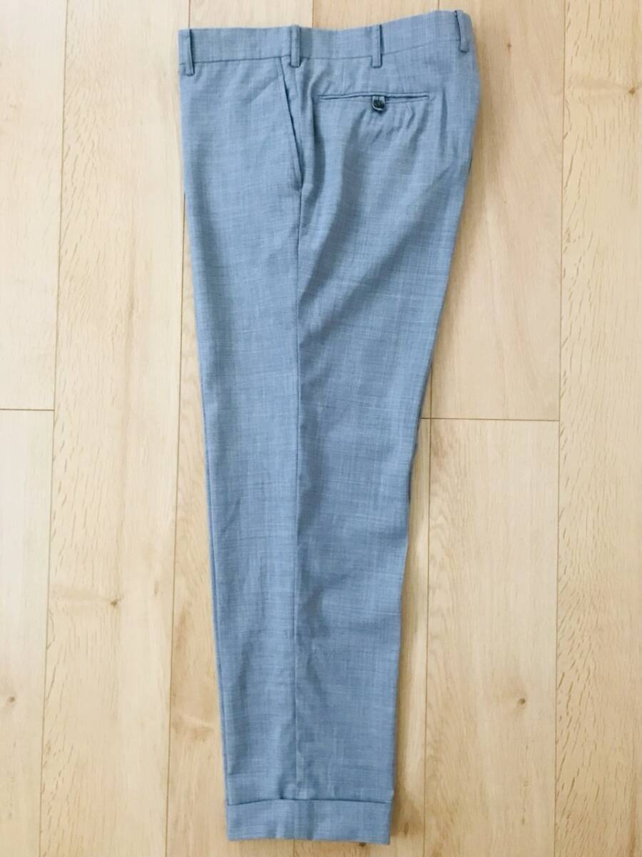 サイズ | 表記94(実寸/ウエスト:90cm もも幅:31cm 裾幅:19cm 股上:25cm 股下:71.5cm) 色 | グレー | 素材 | 表地:ウール100 裏地:キュプラ100% | コンディション | 7 | |