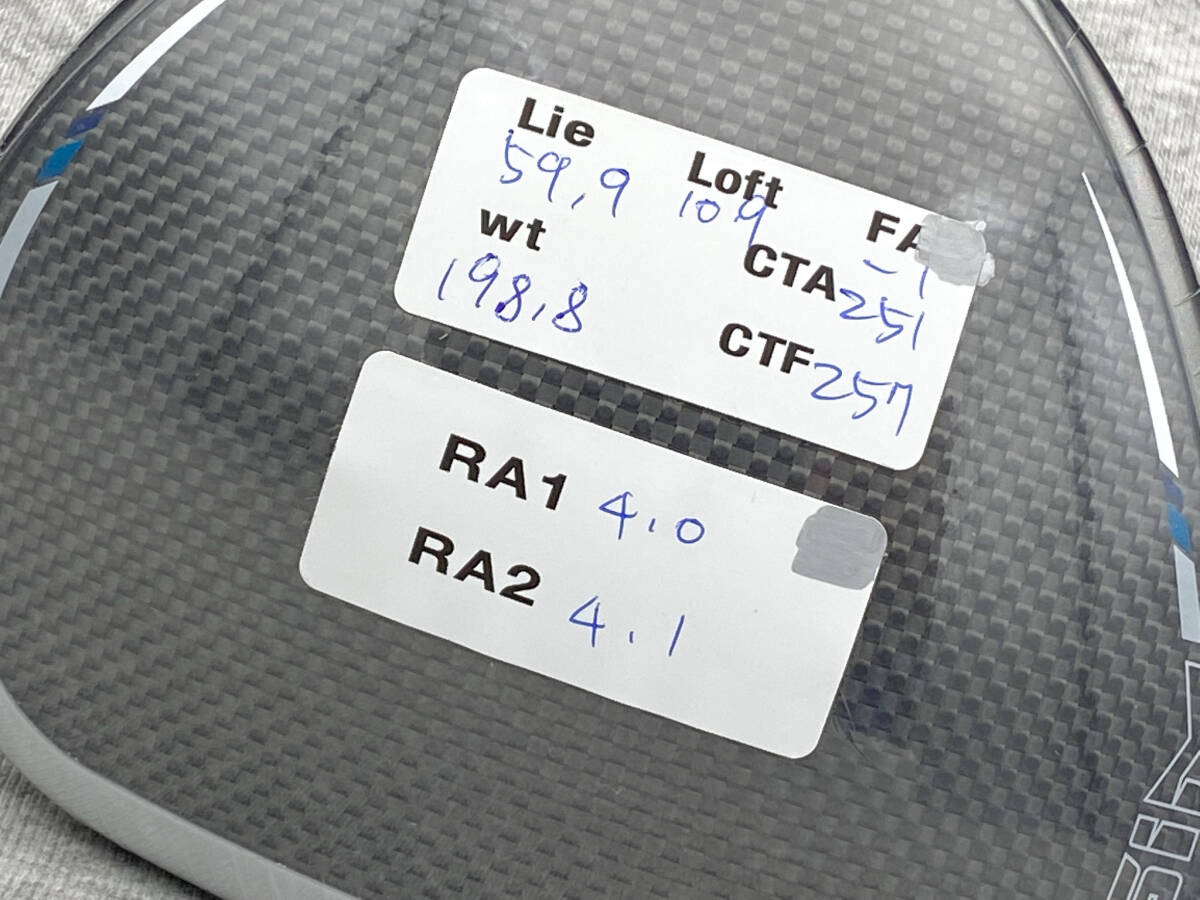 ロフト10.5 表記(リアルロフト10.9°) ライ角 59.9° F.A(フェースアングル)1.0° CLOSED(ほんの少し左向き、ほぼスクエア)
