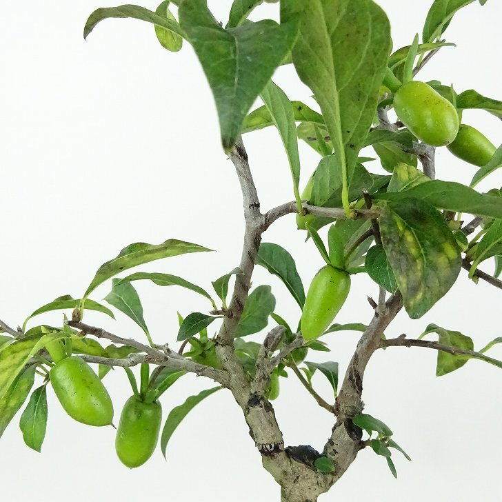 | ■植物ですので撮影時期や季節によって剪定などの手入れにより写真から変化がございます。撮影日をご確認のうえ、ご注文ください。 ■翌年の実付きをよくするために葉が落ちた後の11月末~12月にかけて摘果しています。お届けの商品にはロウヤガキの実がない場合がございます。 ■老爺柿の種類は沢山あり、品種の記載がない商品は仕入れの時点で確認ができておりませんので、その旨ご了承のほどお願いいたします。 【老爺柿盆栽】 開花時期は4~5月頃に花を咲かせます。雌雄異株で、実を成らすためには雌木と雄木が必要になります。小さな実が成る渋柿で、実が枝にぶら下がって成る特徴があります。老爺柿は沢山の品種があり、実の形状や色も様々で、丸い形から細長くとがったもの、大きさも大小があり、色合いも赤みを帯びた橙色から黄色、朱赤など豊富にあります。 |