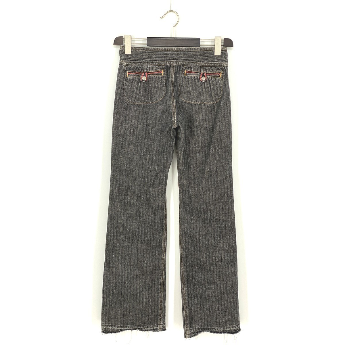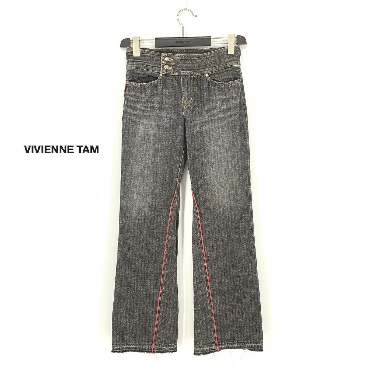 B0903/美品 VIVIENNE TAM ヴィヴィアンタム コットン 切りっぱなし ストレート ワーク ワイド デニムパンツ 1 灰色 インディゴ レディース