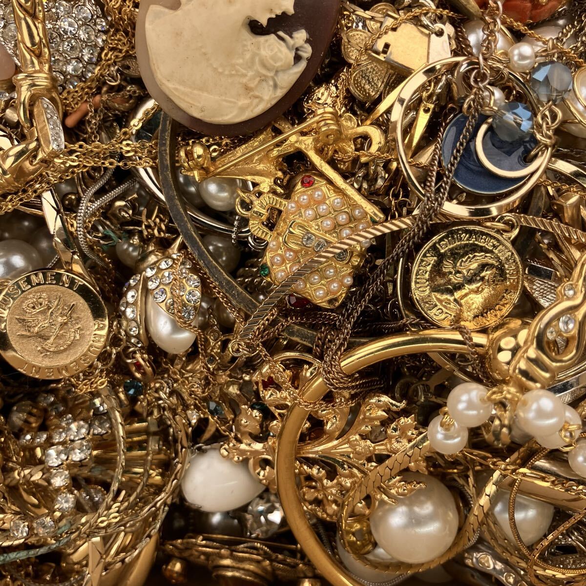 アクセサリー 約7.5kg ネックレス ブローチ イヤリング タイピン カフス 1円スタート メッキ ジャンク まとめ 大量(Y185)
