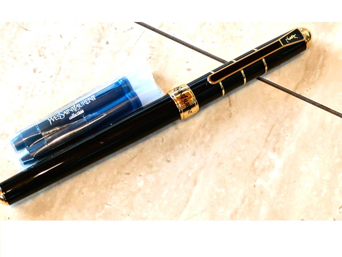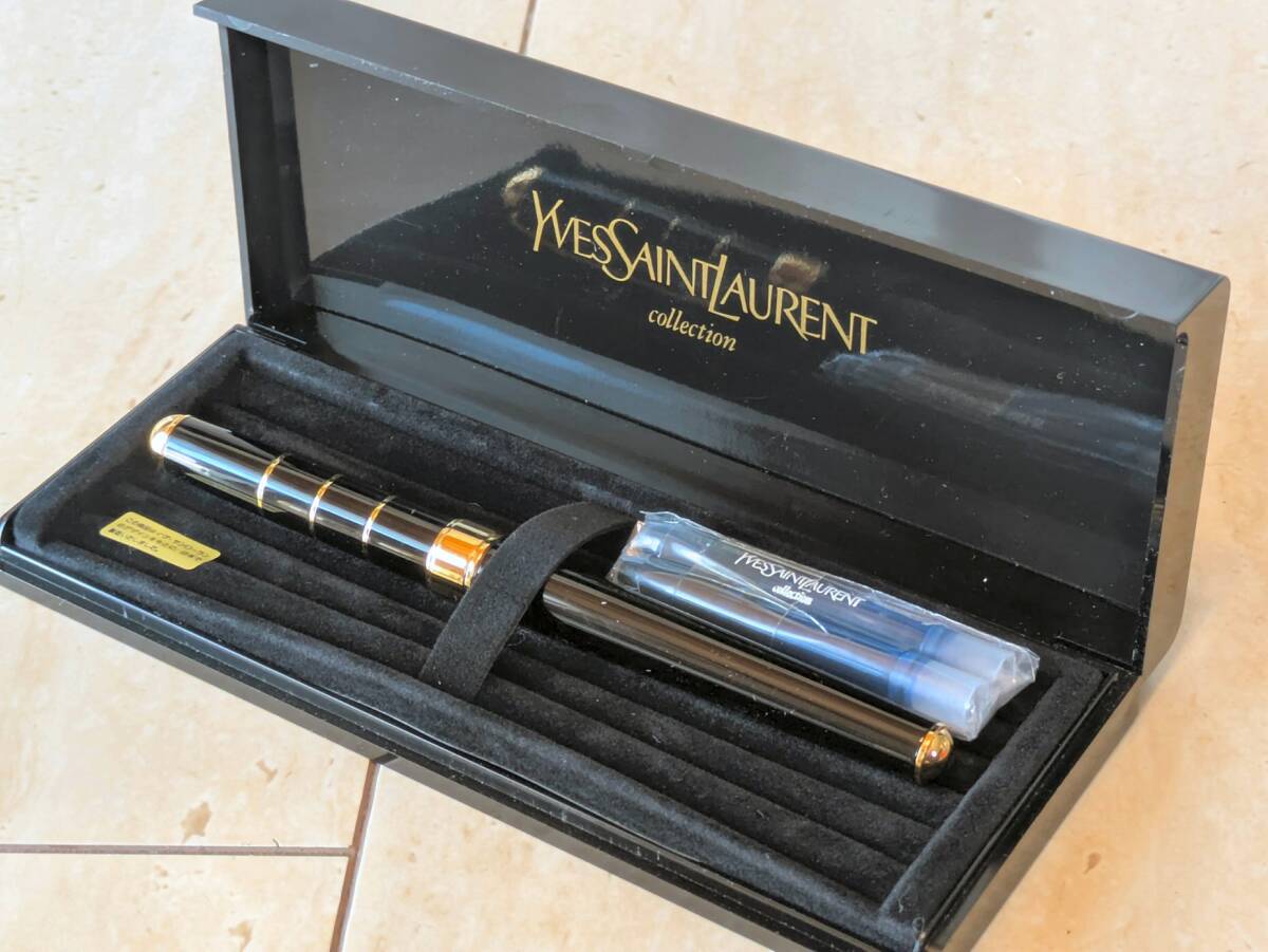 Й★イヴサンローラン★万年筆★YS-535 G ラッカー★FOUNTAIN PEN★替えインク2本付き★ケース付き★箱入り★未使用品★定形外可★