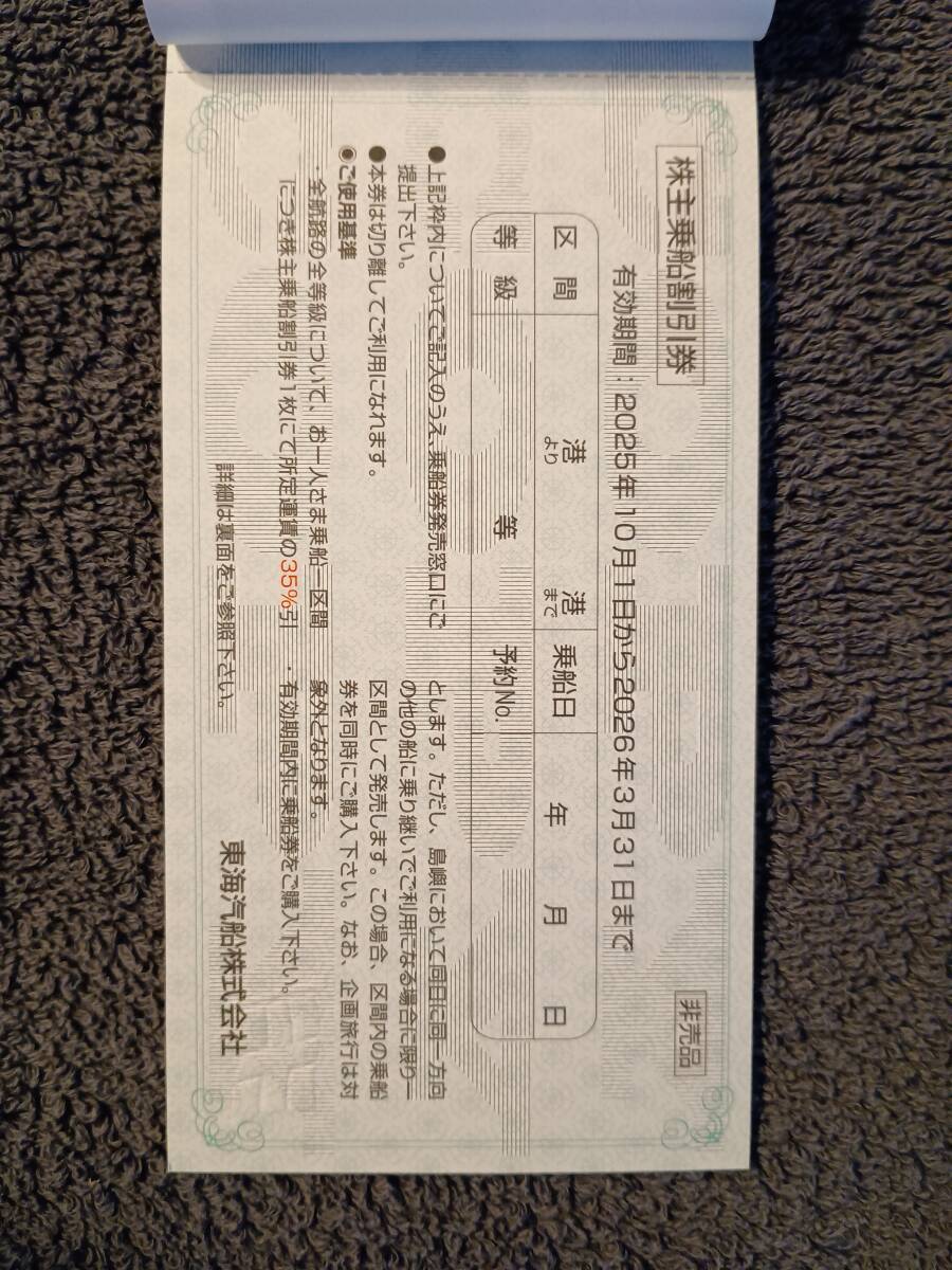 東海汽船の株主乗船割引券、1冊10枚綴りです。