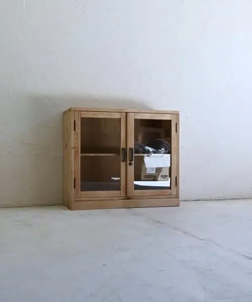古いガラス扉の小棚  アンティークアトリエ飾り棚陳列棚食器棚本棚書棚店舗什器