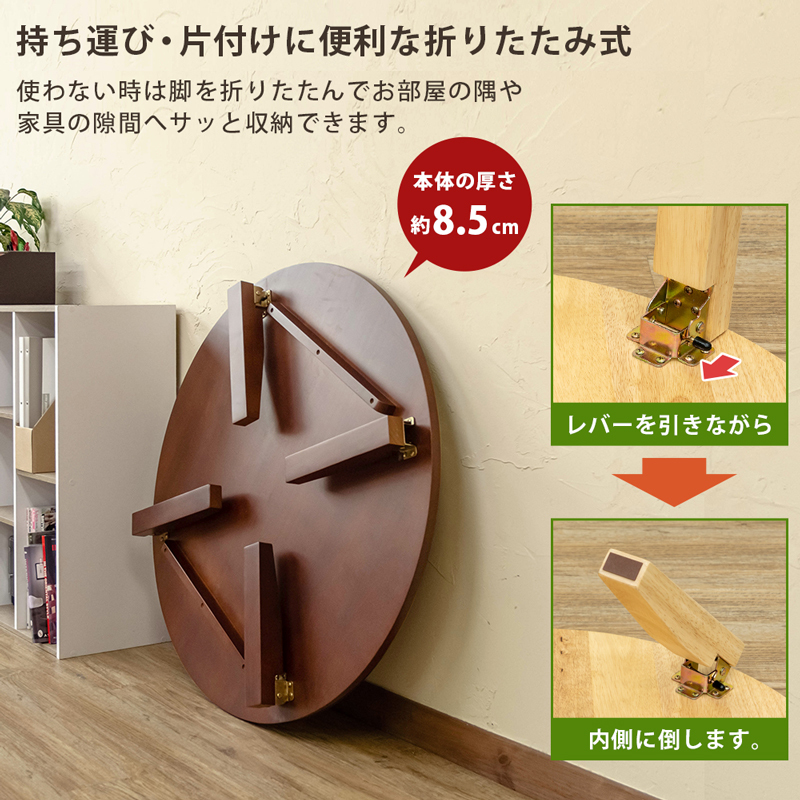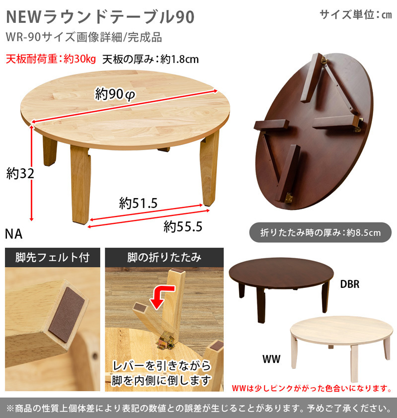 | サイズ | (W)幅90cm×(D)奥行90cm×(H)高32cm 天板厚:約18mm 折りたたみ時の厚み:85mm |