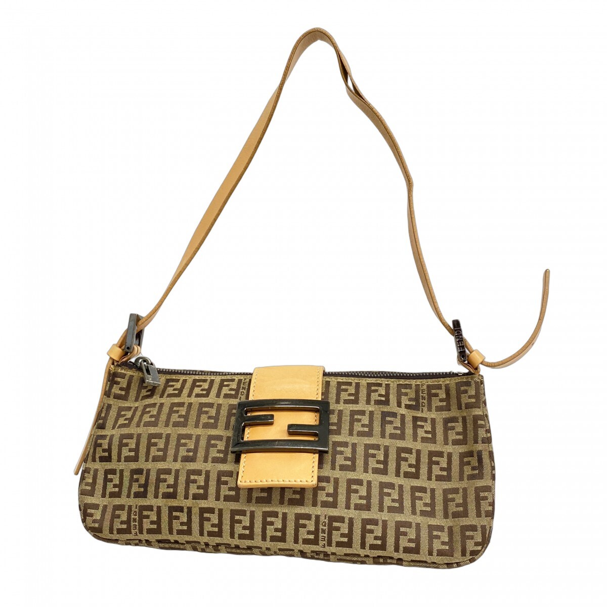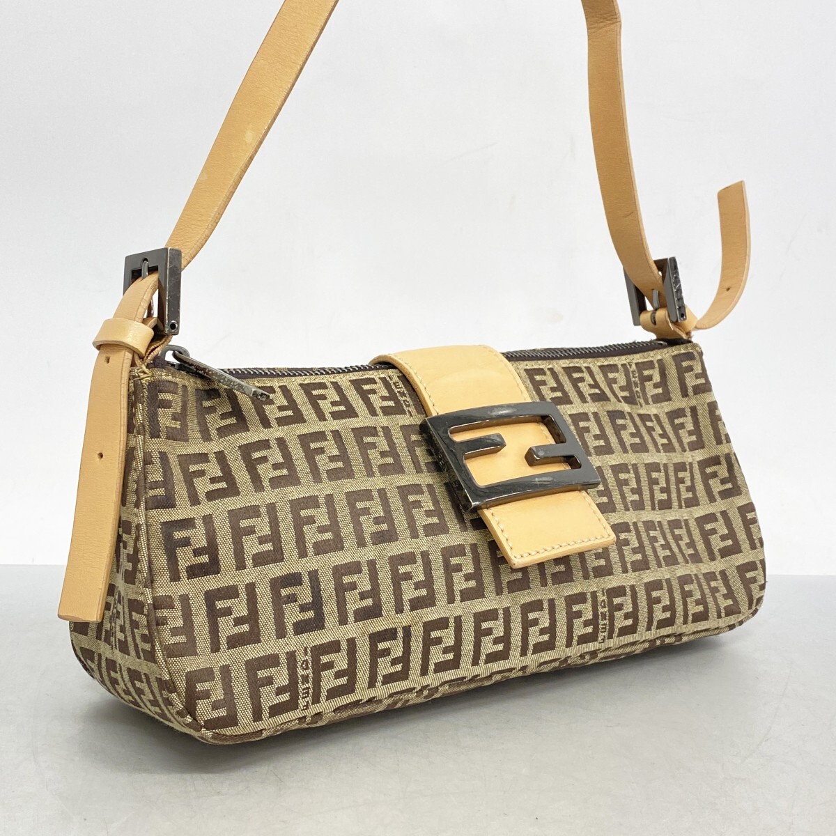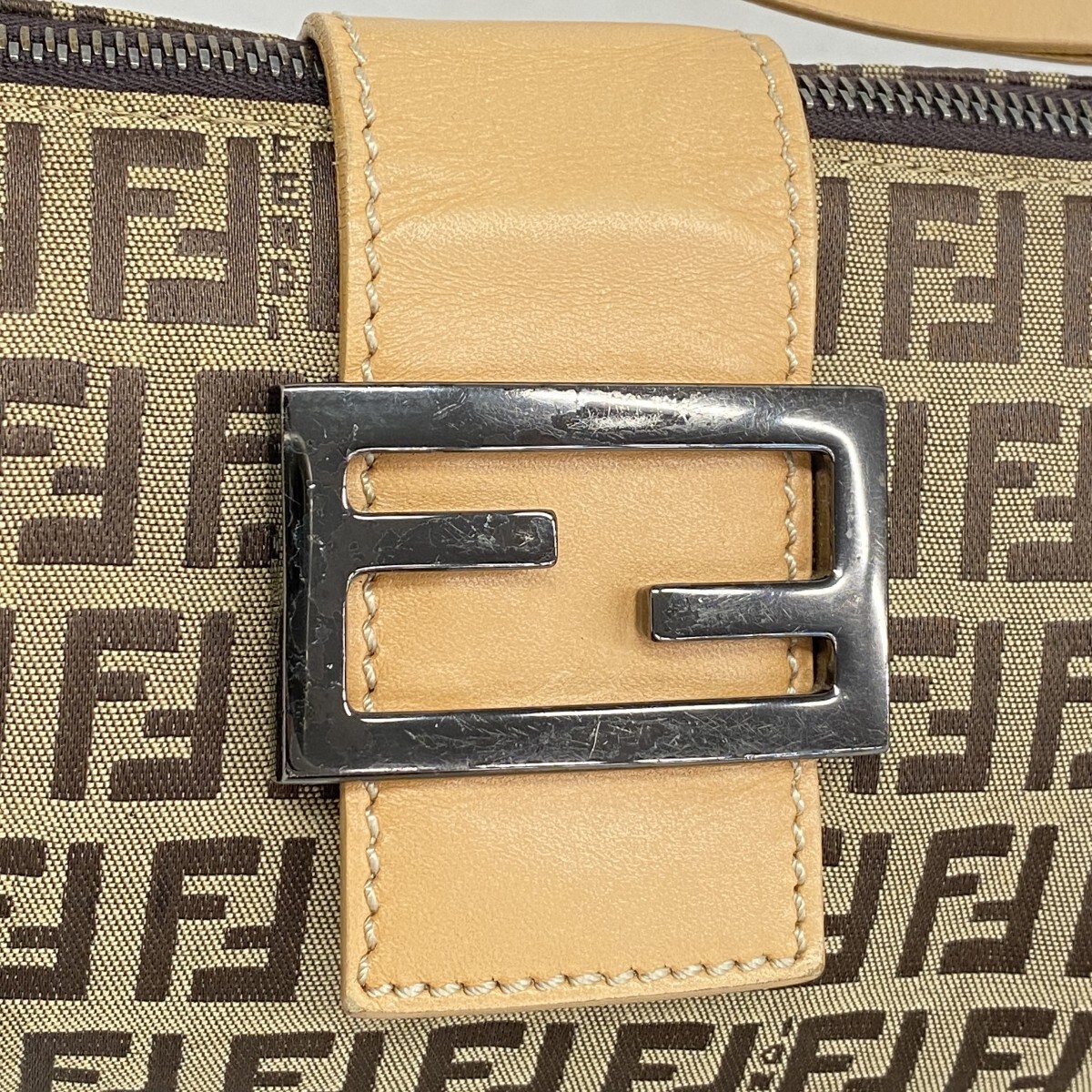 ★最終価格★SALE【5ia1090-h】フェンディ ショルダーバッグ ズッキーノ ナイロンキャンバス ベージュ ブラウン シルバー金具