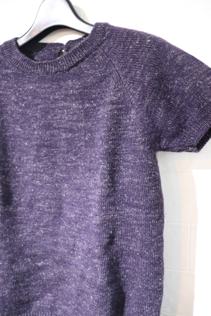 即决 90’s Martin Margiela マルタンマルジェラ 本人期 MISS DEANNA 表記あり タグ外れ 背面フェイクダイア釦 半袖短丈ニット S 紫