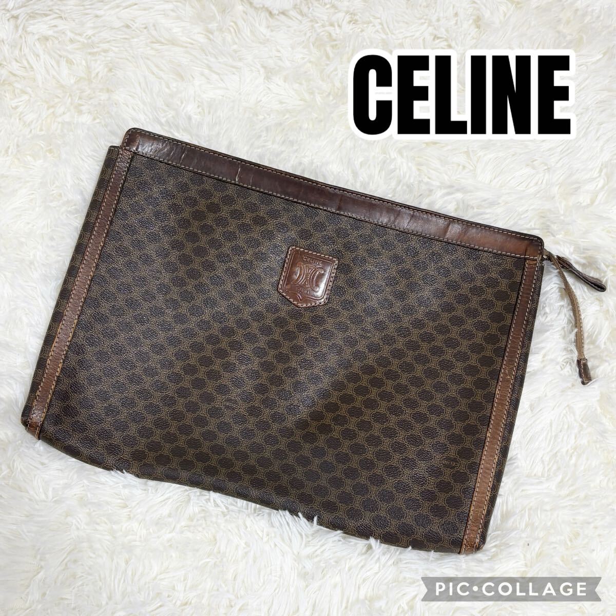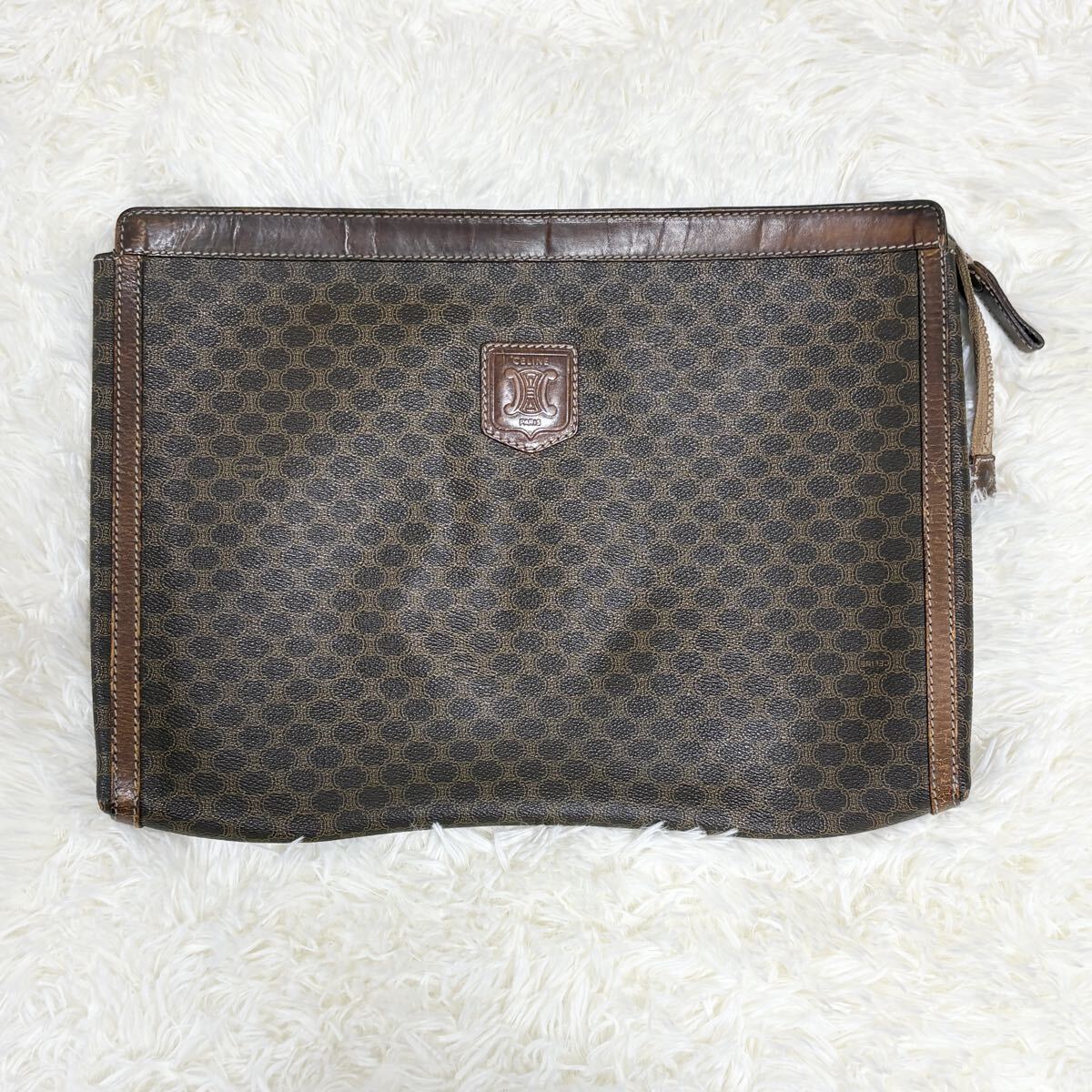 This is an authentic CELINE clutch bag with Macadam pattern.