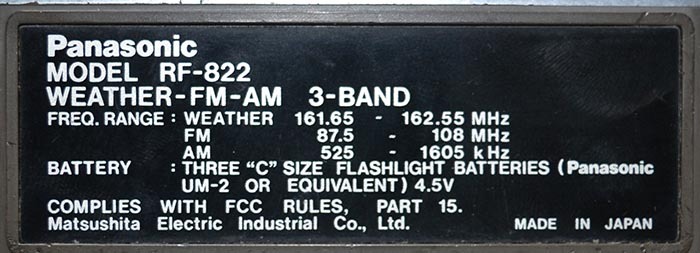 Panasonic RF-822 WEATHER/FM/AM 3BAND RADIOです。