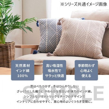 | ふんわりとした柔らかさがあるインド綿で作られたクッションです。吸湿発乾性が良く年間を通して快適なのでオールシーズン使えます。四隅に付いたフサ(タッセル)でおしゃれ度アップです。裏面も同一生地を使用し、アンティークやヴィンテージにもあうナチュラルなデザインがおすすめです。 ※同色2個のセットです。 |