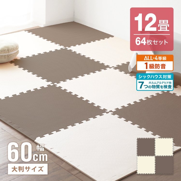 | ジョイントマットです。 大型サイズだから、敷く枚数も少なく、設置もラクラク! カッターやはさみで簡単に切れるのでレイアウト自由自在! 足音をやわらげてくれるので、子供部屋やフローリングのお部屋に最適です! 適度なクッション性が転倒時に衝撃を和らげてくれます! 冬は床下からの冷気をカット! 夏は冷房による温度を効率よく保ちます。 汚れた部分は取り外して水洗いが出来てカンタンお手入れ♪ 嬉しい!サイドパーツ付き! 壁ぎわに敷いても、隙間なくキレイに。 掃除がラクラク!! 室外用でも使える! 簡昜プールの下に敷いてもOK! アウトドアにも使えます! ペットがいるご家庭にもおすすめです。 【商品仕様】 カラー:ブラウン×ベージュ サイズ(約):幅60×奥行60×厚み1.0cm(※1枚) (設置目安サイズ(約):121×121cm(正方形)) 素材:PE素材 【商品内容】 ジョイントマット×64 サイドパーツ(角付きパーツ64本、角なしパーツ64本) ※入荷時期によって、厚みや幅に多少の誤差がある場合がございます。あらかじめご了承ください。 ※仕様・デザインは改良のため予告なく変更することがあります。 ※床材との温度差で製品が反る場合があります。 |