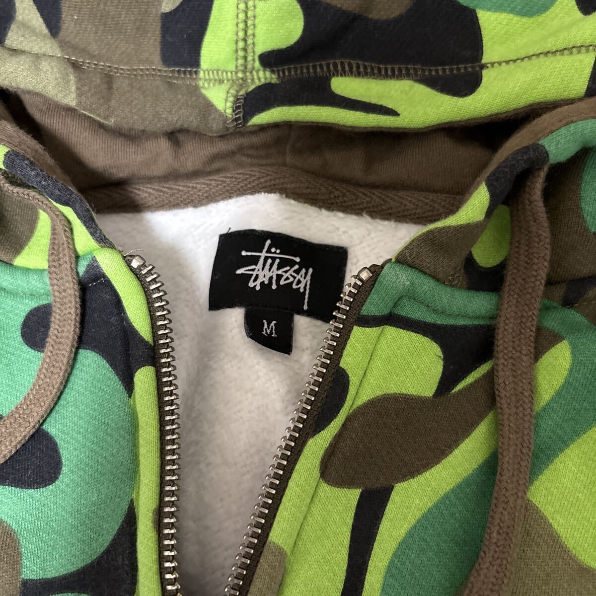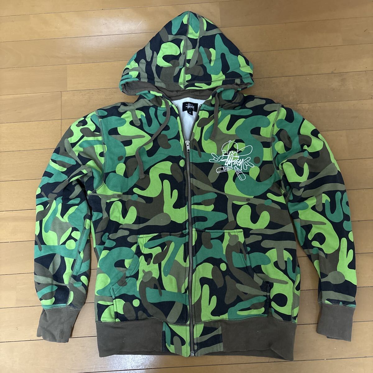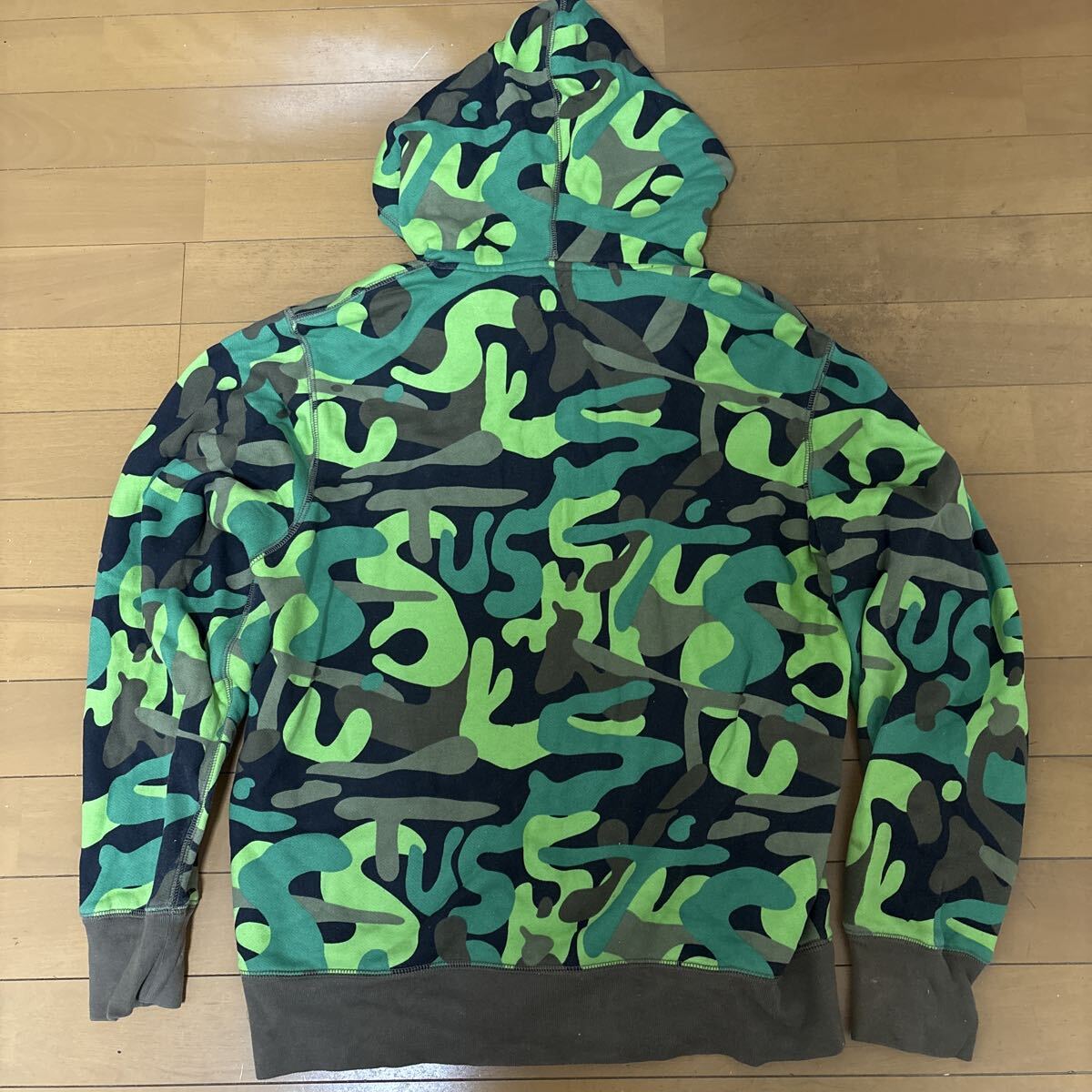 STUSSYロゴ迷彩パーカーです。