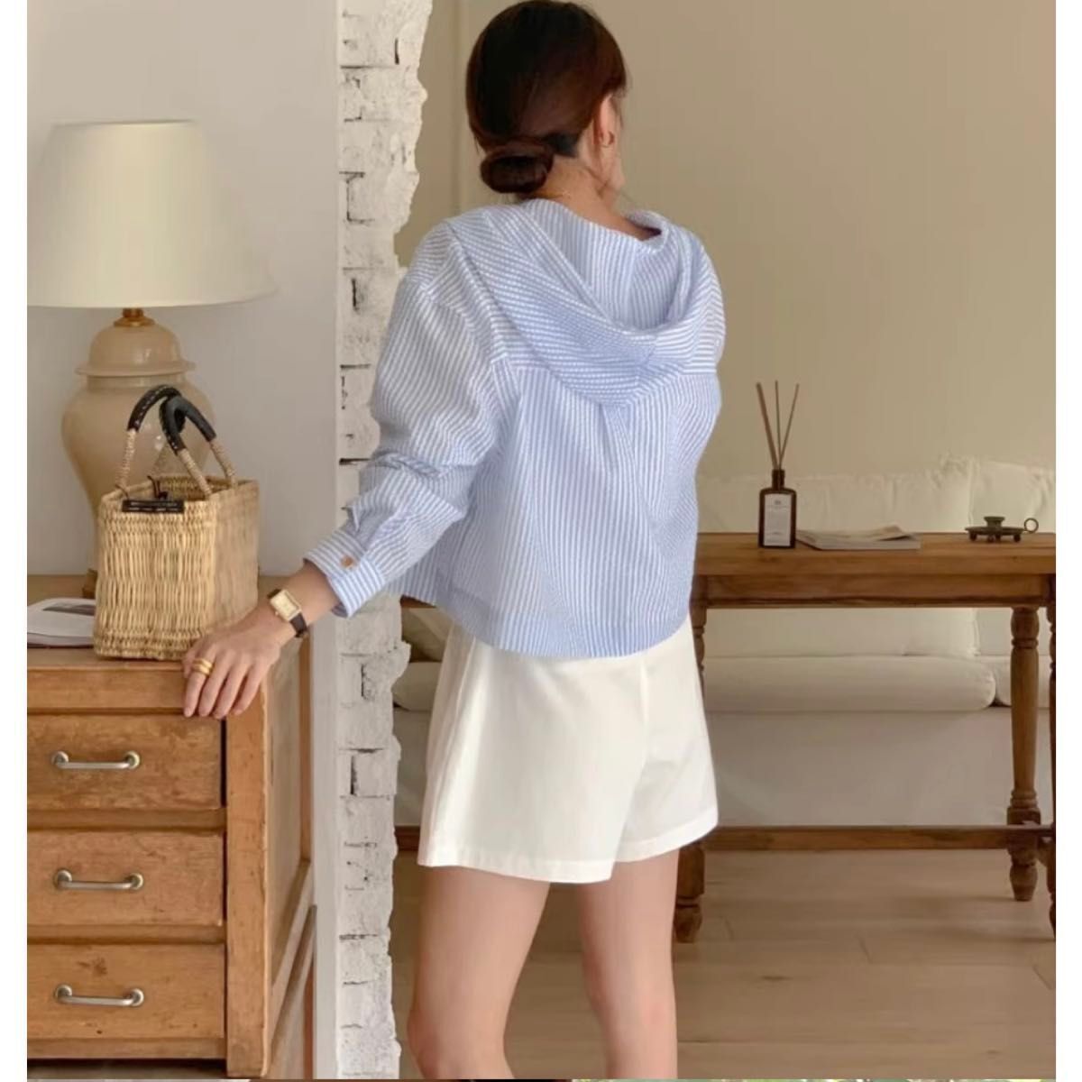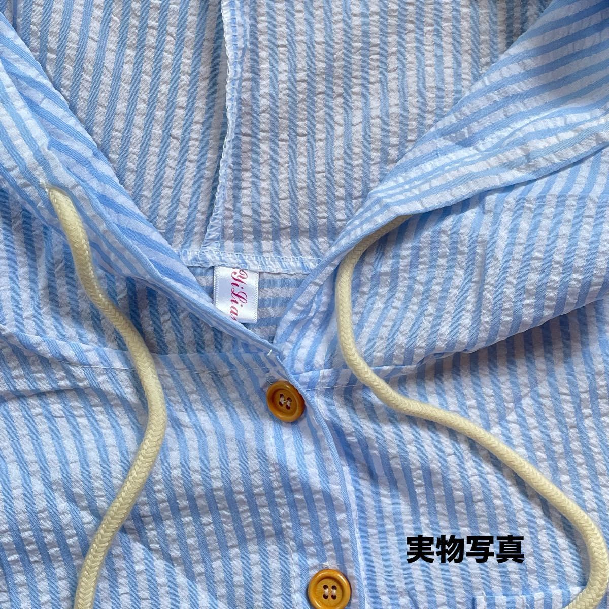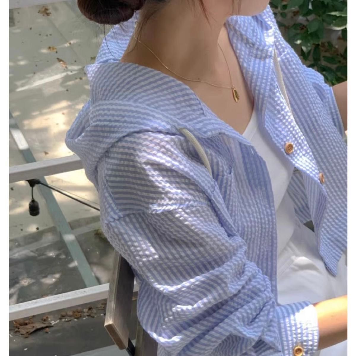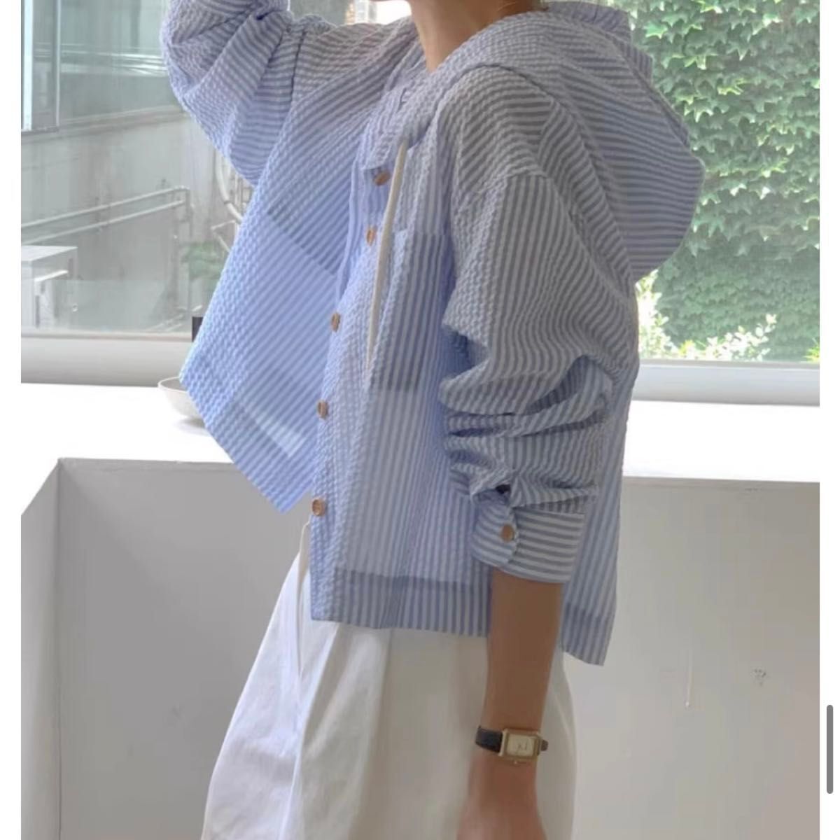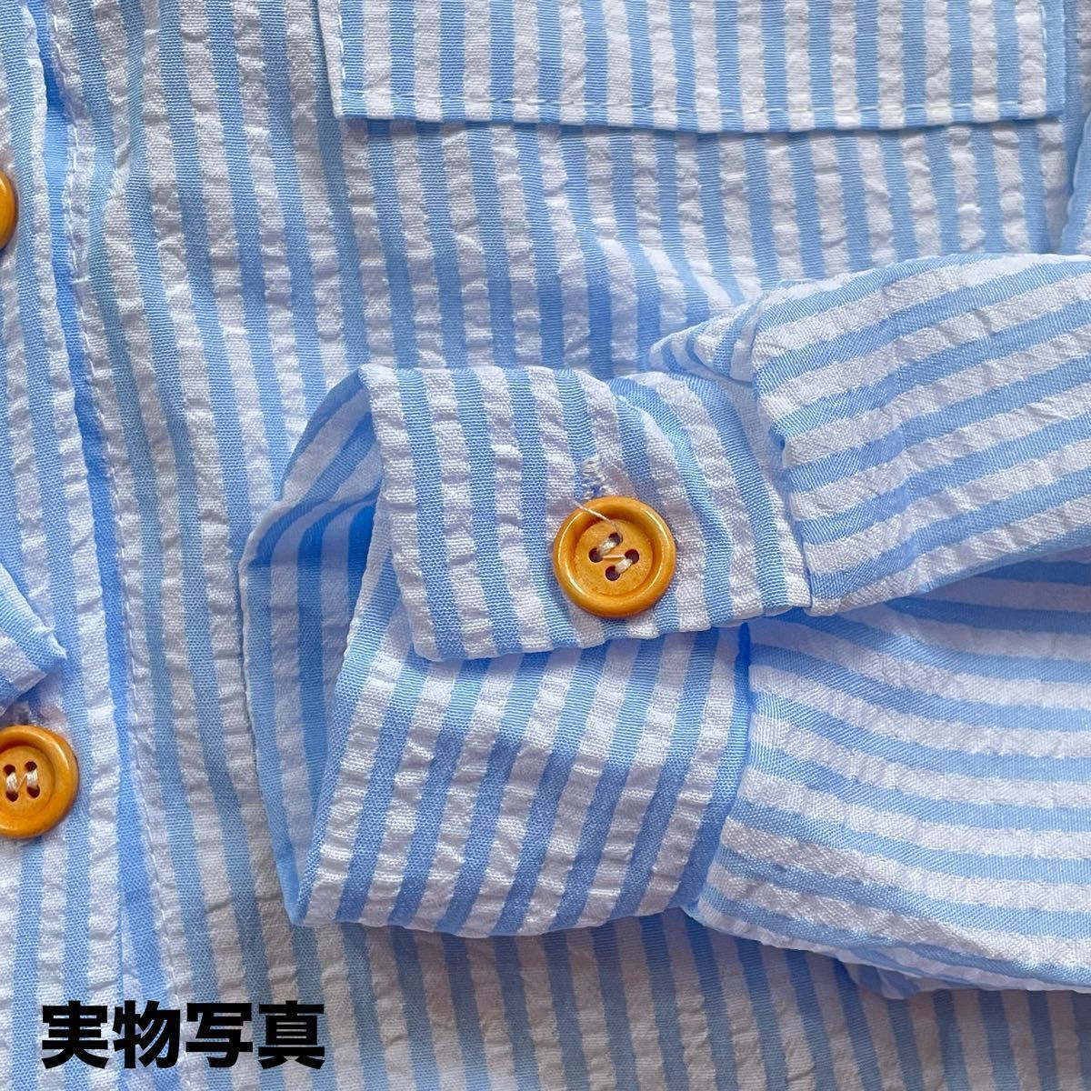 ブルー×ホワイトの爽やかなストライプ柄は、羽織るだけでコーデが完成。