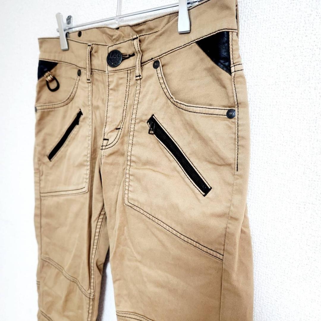 Leeらしいカジュアルなムードに、合皮切替でちょっぴりモード感をプラスしたストレートパンツです
