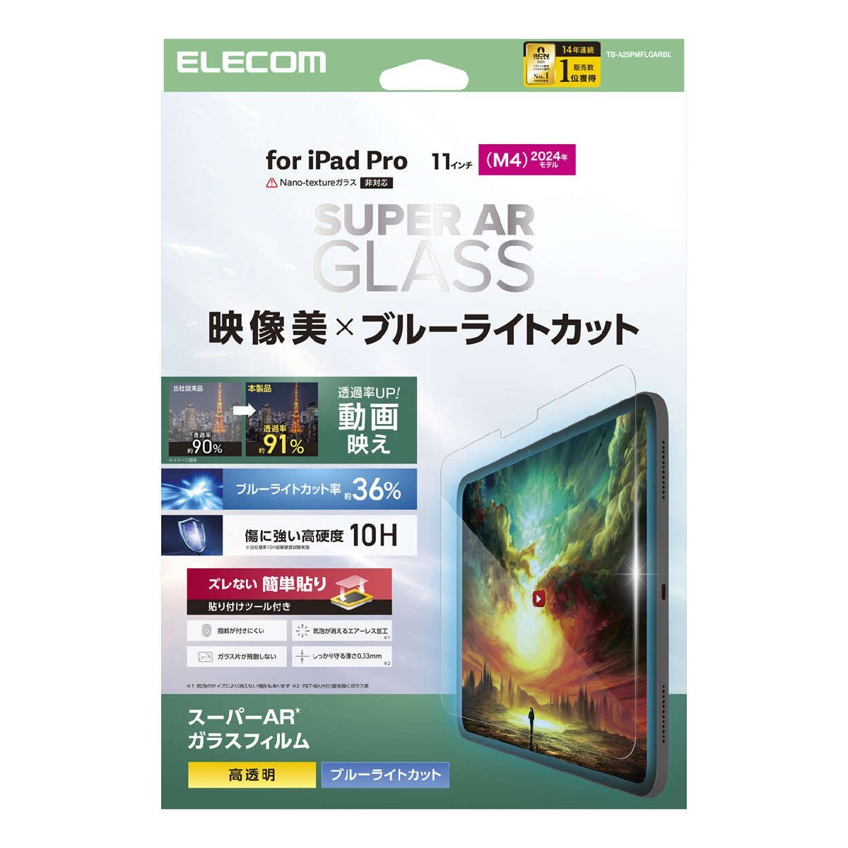 製品 | 11インチiPad Pro(M4)用画面保護ガラスフィルム 動画映え・高透明・ブルーライトカット・ガイトフレーム付 |