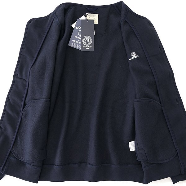 【Sheltie Club】 〈湘南の海〉をテーマとしたブランドコンセプトに沿って、マリンテイストを味付けしたシンプルなスタイルを信条とし、ラフで、気取らず、気張らない、ややゆったりとした着こなしを提案します。 裏フリース仕様で保温性抜群のスウェット生地を使用した秋冬向けブルゾンです。 トレンド感のあるクルーネック仕様なのでコーディネートがしやすく、適度にゆったりとしたリラックスできるシルエットが、カジュアルな雰囲気を演出してくれます。 肘部分のエルボーパッチが個性的で、肘当て素材には耐久性に優れたリップストップクロスを使用しています。 その他のデザインとして、ブランドネーム入りの大きめボタン、左胸にトレードマークであるシェットランドシープドッグのワンポイント刺繍、左裾に骨をモチーフとしたビス装飾、小物の収納に重宝するファスナーポケットなど、細部にまでこだわったアイテムです。 |