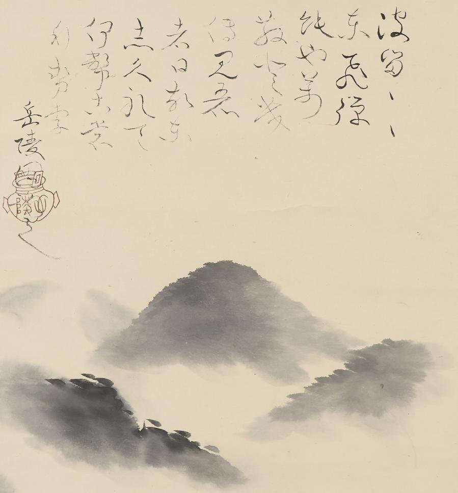 この作品は、肉筆・紙本により『飛騨の山』が描かれております。