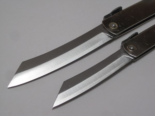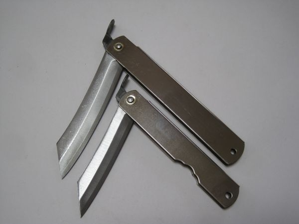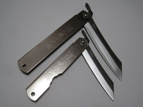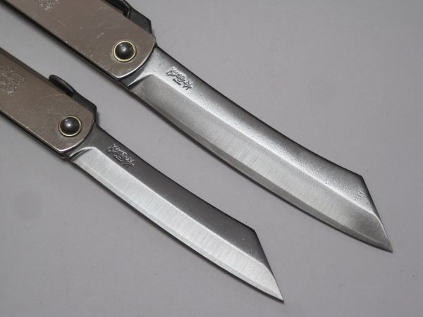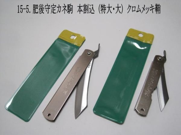 15-5. “ザ・肥後守” 肥後守定カネ駒 本割込SK鋼(特大・大)2本セット 鞘:クロムメッキ ケース付 和式折りたたみナイフ DIYに