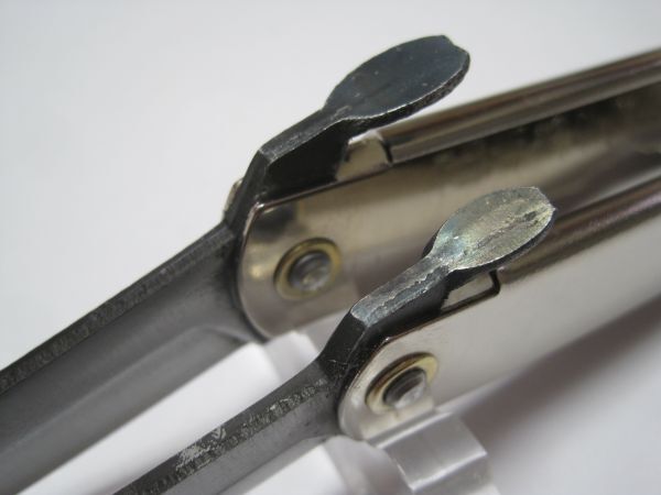 *V字型の両刃となっているため、利き手に関係なく左右どちらでも使うことができます。ロック機構はありません。