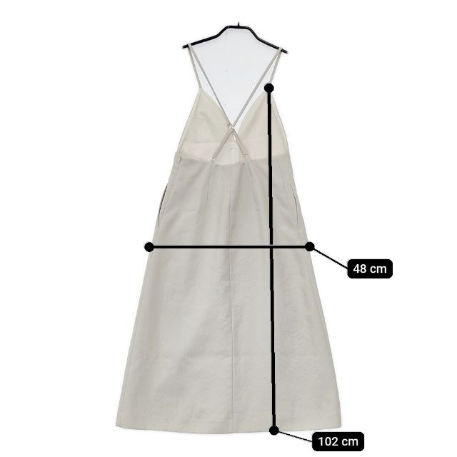 実寸サイズ | 着丈:約102cm 備考 ヒップはおおよその採寸 肩紐は調節可能 ※採寸画像がある商品はハンガーに吊るした状態での計測のため、平置きでの採寸とは差が生じる場合がございます。平置きでの実寸サイズをご希望の場合は、ご購入前に必ずご質問ください。 ※記載以外のサイズが合わないことを理由とした返品はできませんので、 記載部分以外で実寸サイズの気になる箇所があれば必ず購入前にご質問ください。 |