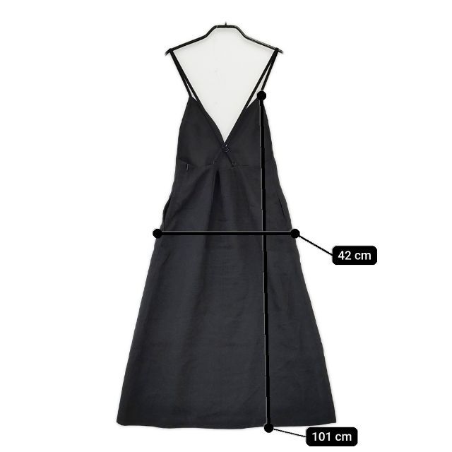 | 実寸サイズ | 着丈:約101cm 備考 ヒップはおおよその採寸 肩紐は調節可能 ※採寸画像がある商品はハンガーに吊るした状態での計測のため、平置きでの採寸とは差が生じる場合がございます。平置きでの実寸サイズをご希望の場合は、ご購入前に必ずご質問ください。 ※記載以外のサイズが合わないことを理由とした返品はできませんので、 記載部分以外で実寸サイズの気になる箇所があれば必ず購入前にご質問ください。 |