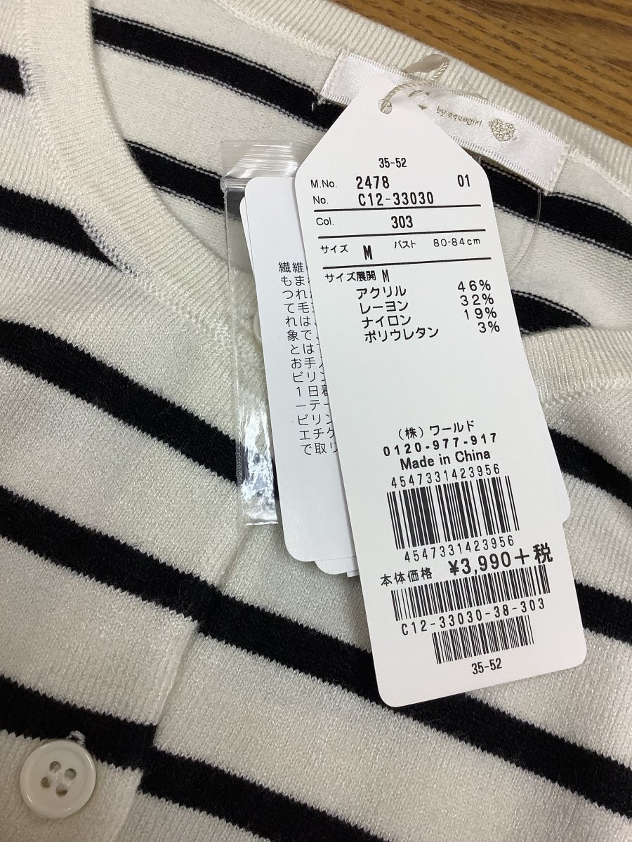 AG by アクアガール (aquagirl) タグ付き未使用 きなり×黒ボーダー ニットカーディガン 【表示サイズ】 M 【平置き実寸】 脇下身幅 41cmほど 着丈 57cmほど 肩幅 33cmほど そで丈 58cmほど 【季節感】春秋向け 【状態その他】 未使用 ・ポケットはありません 当店管理番号:10^141187 |